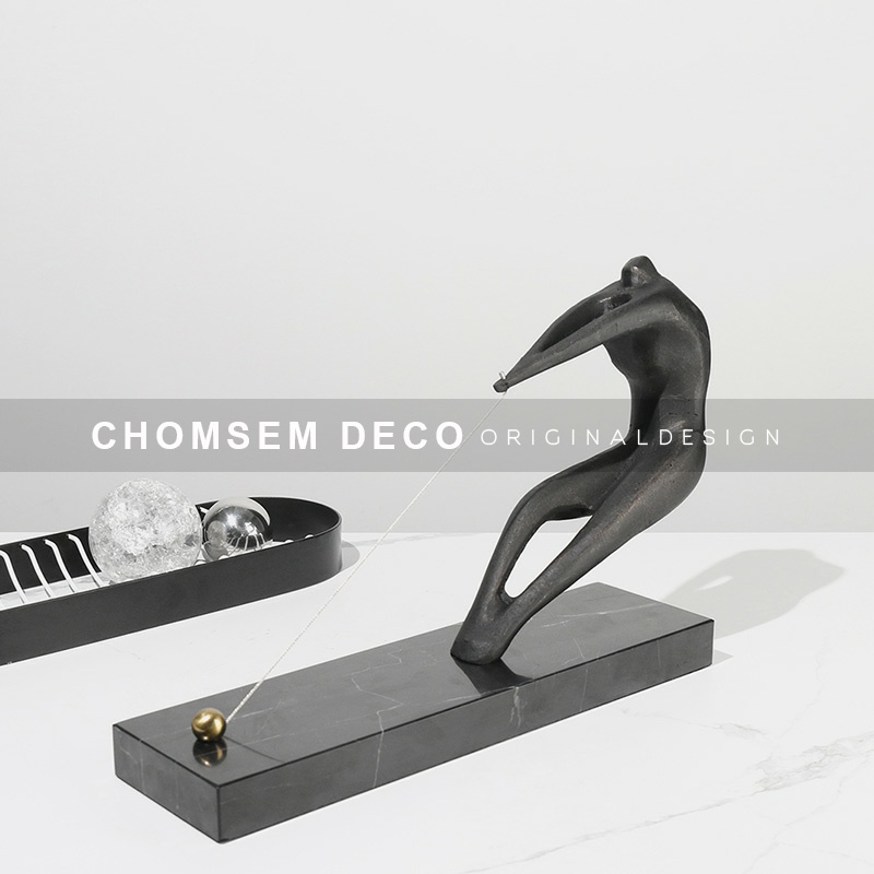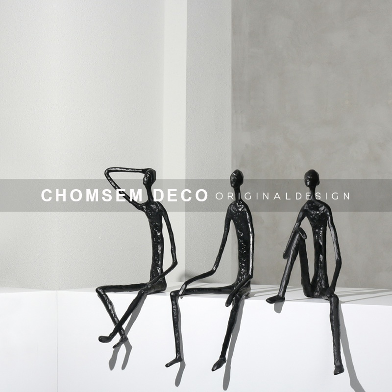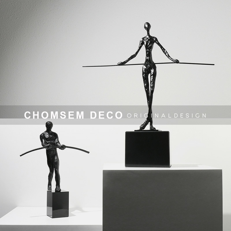 现代创意黑色铁艺人雕塑金属摆件酒店办公室玄关桌面摆设软装饰品