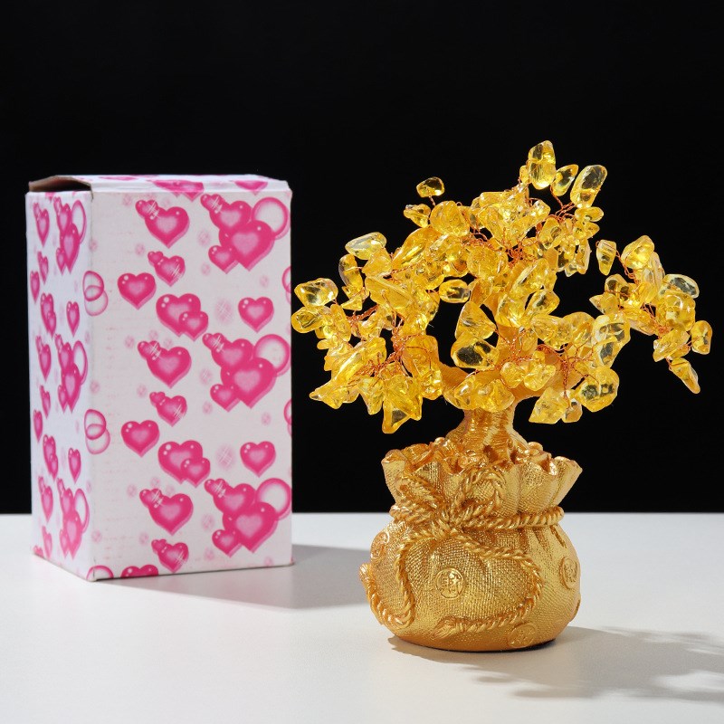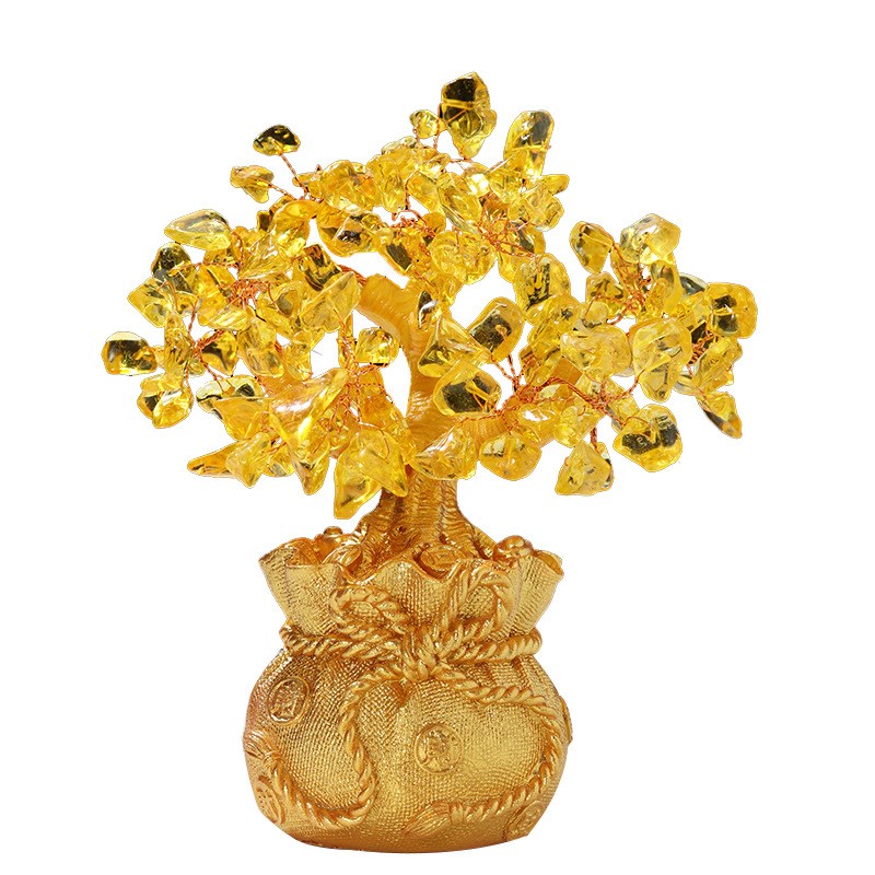 黄水晶摇钱发财树招财摆件u酒柜装饰品家居客厅乔迁办公室开业礼