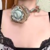 TeNg原创手作干枯玫瑰花颈带中式choker胸针发夹发带腰带一体式