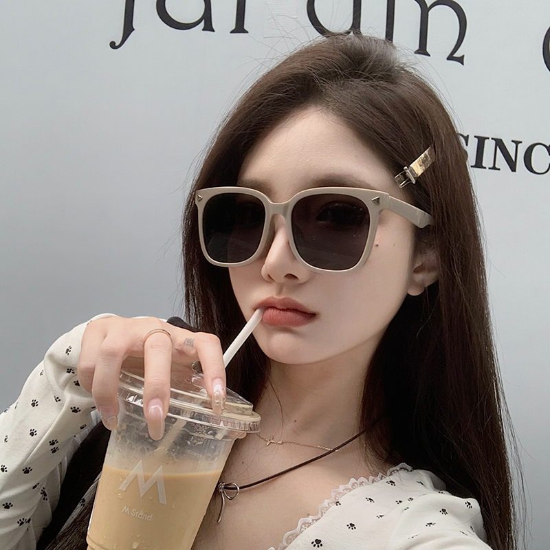 复古方形卡其色高级素颜偏光墨镜女潮网红方圆脸显瘦铆钉太阳镜男