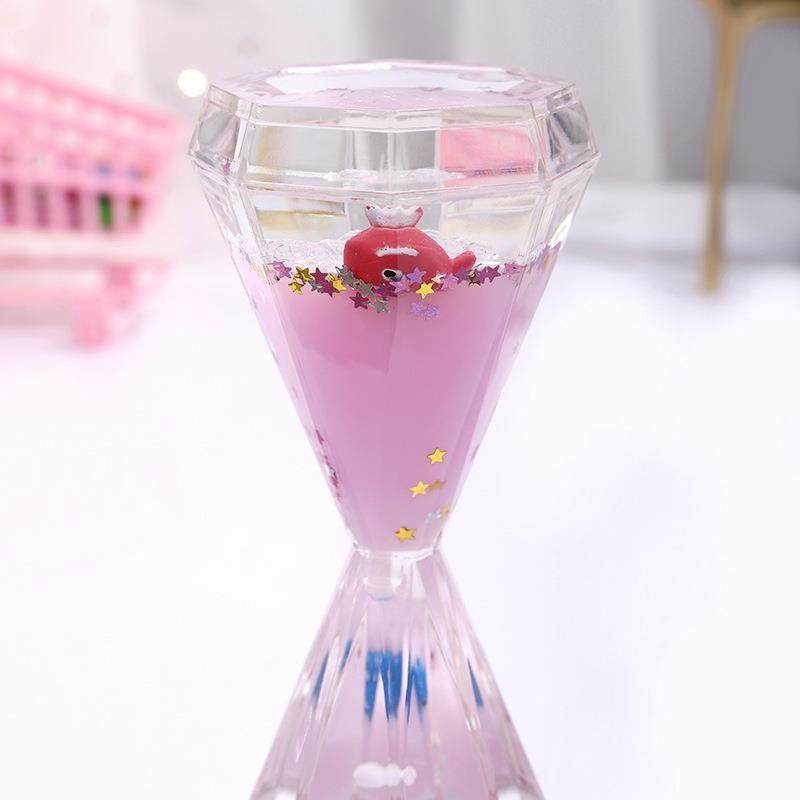 创意两头菱形海豚漂浮油滴创意办公亚克力桌面减压液体沙漏摆件定