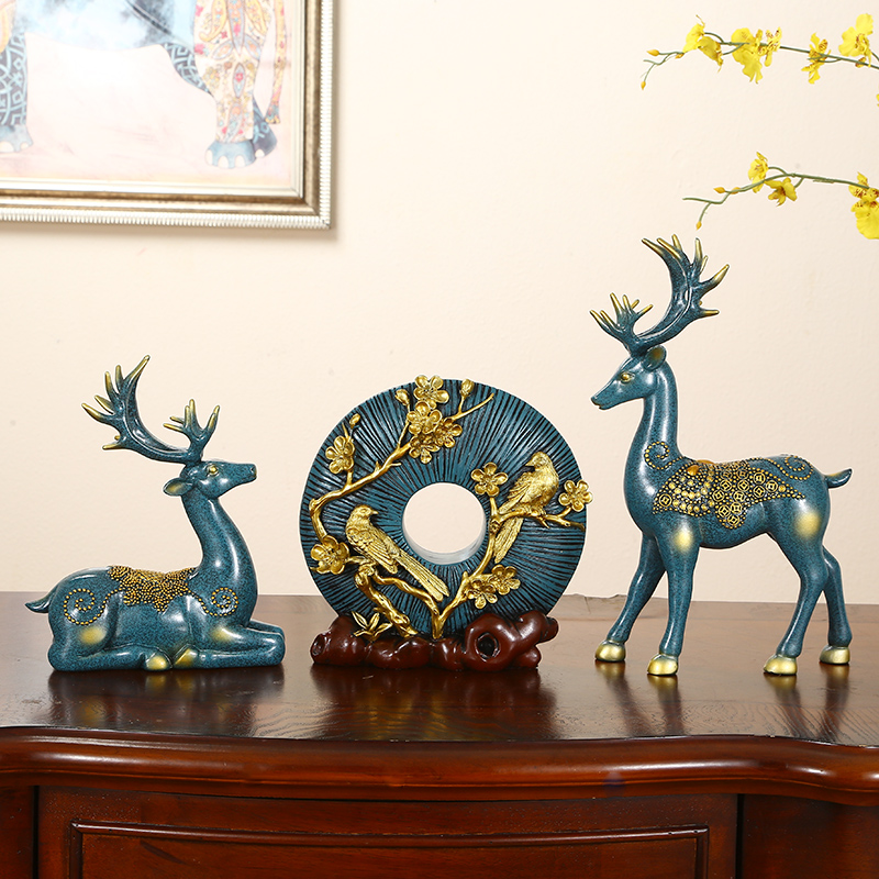 招财鹿创意欧式轻奢家居电视柜客厅酒店装饰摆件美式玄关乔迁礼物
