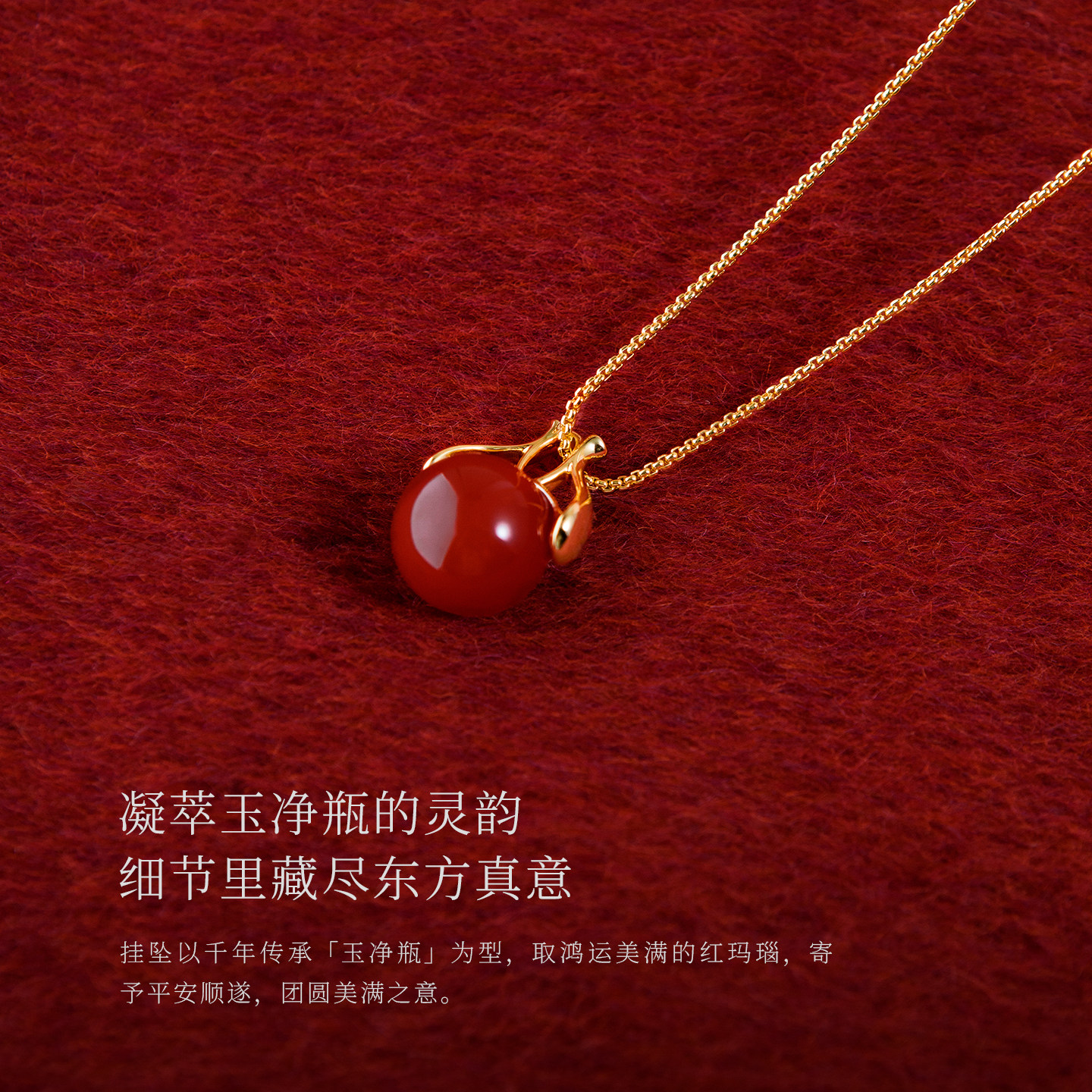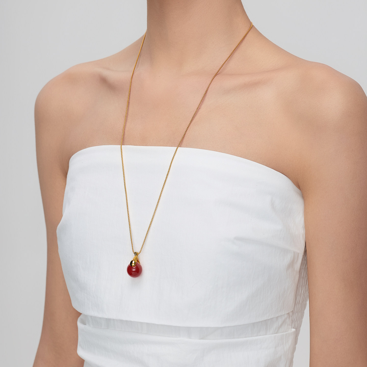 盐岛平安如意红玛瑙圆珠挂坠长项链毛衣链红色吊坠本命年新年礼物