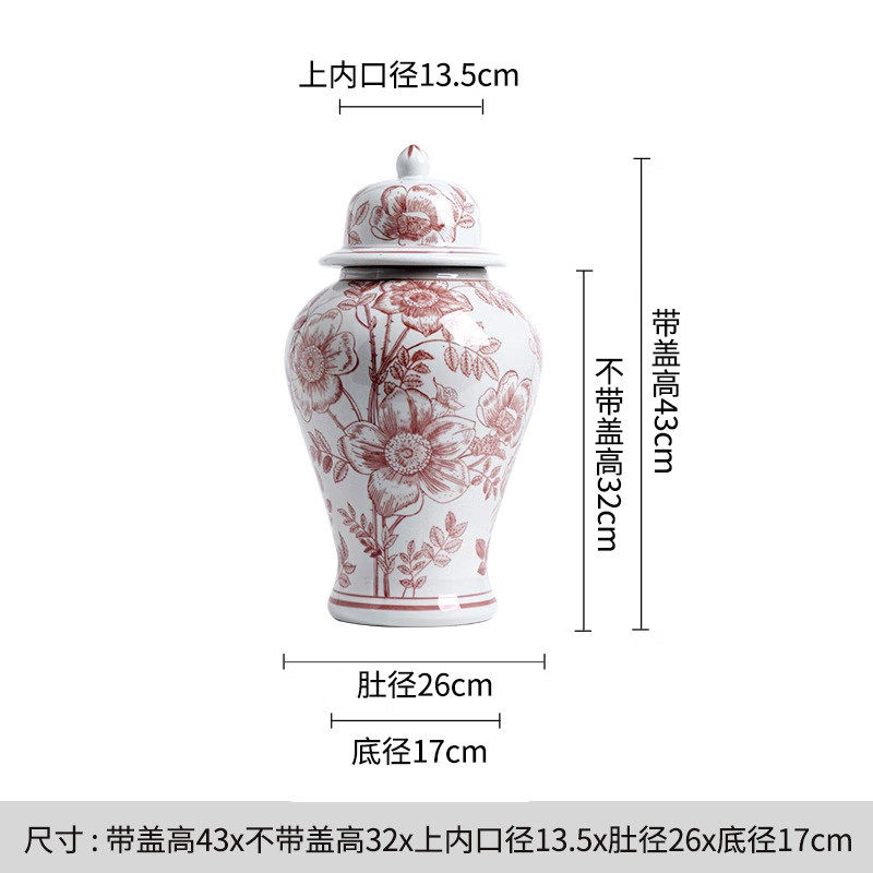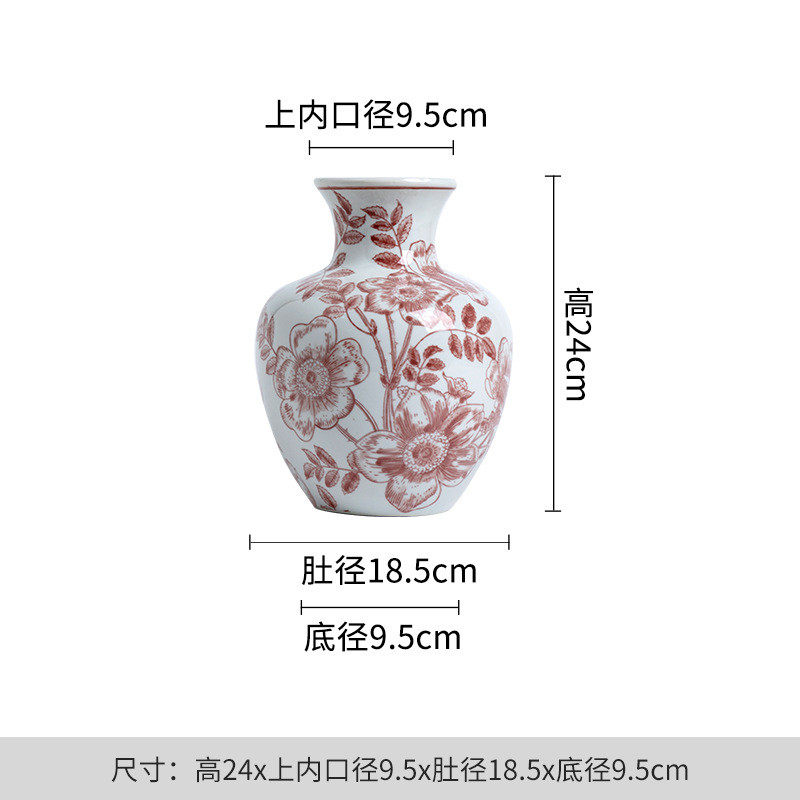 手绘饰品红色玫瑰陶瓷花瓶港风陶瓷装饰摆件可水培陶瓷陶瓷感