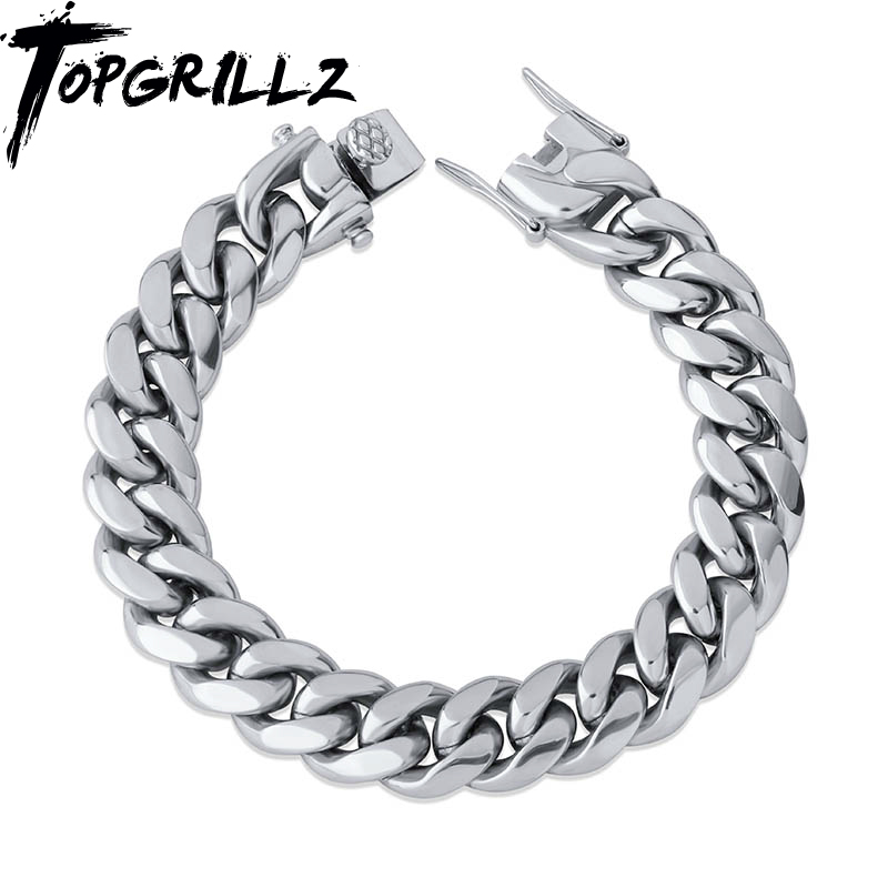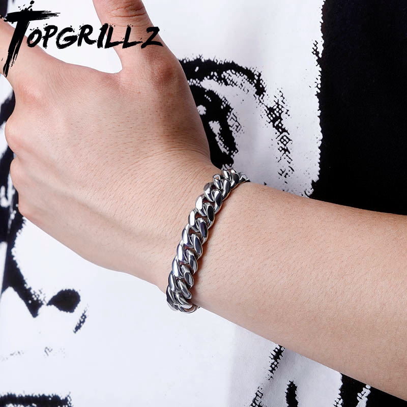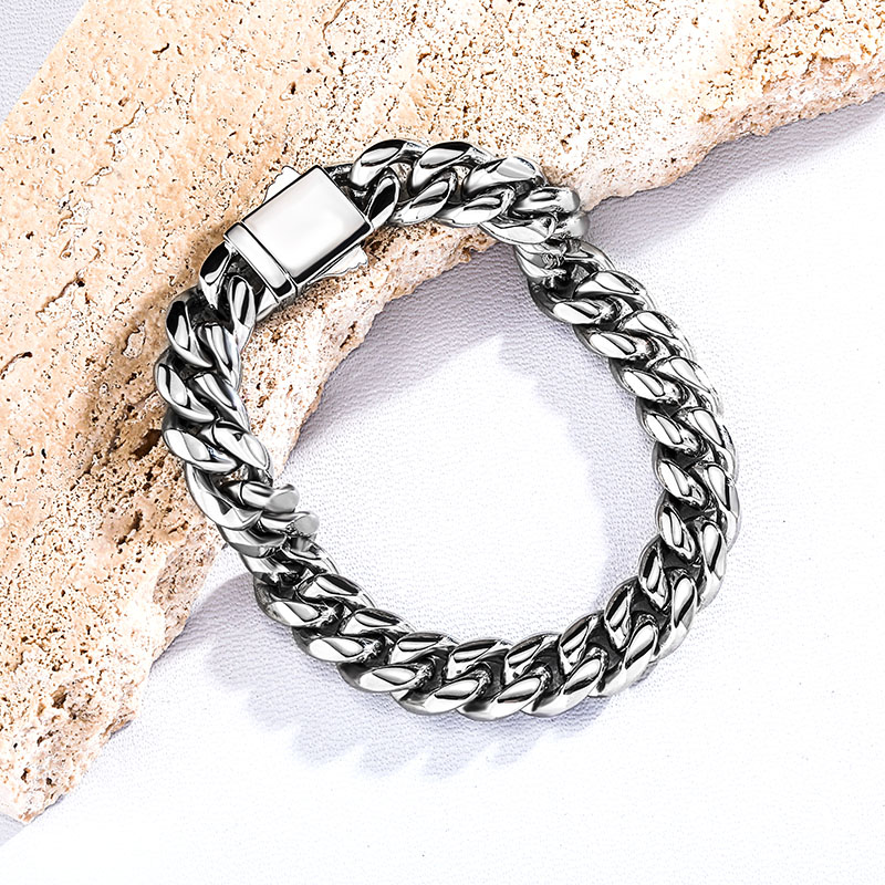 欧美不锈钢弹簧扣古巴手链欧美hiphop男女潮款嘻哈cuban手饰加密