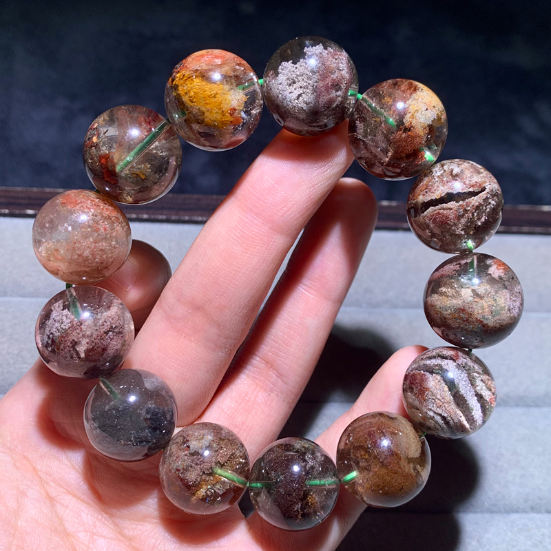 天然巴西彩幽灵单圈手链四季幽灵异象水晶手串一物一图民族风礼物