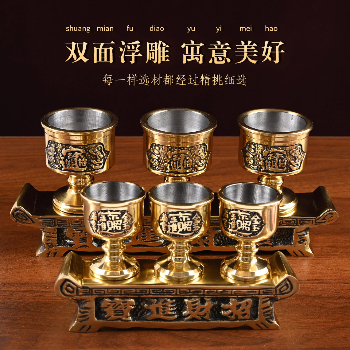 黄铜财神爷供水杯佛前圣水供水杯敬神供杯酒杯家用祖先财神小供杯