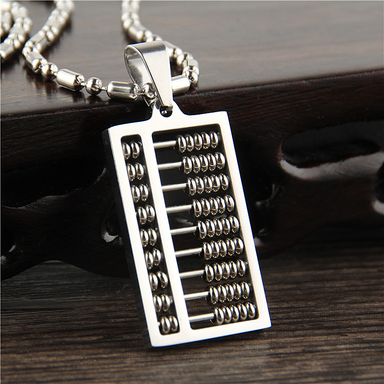 个性民族风可拨动如意算盘吊坠钛钢珠算男女项链饰品挂件招财饰品