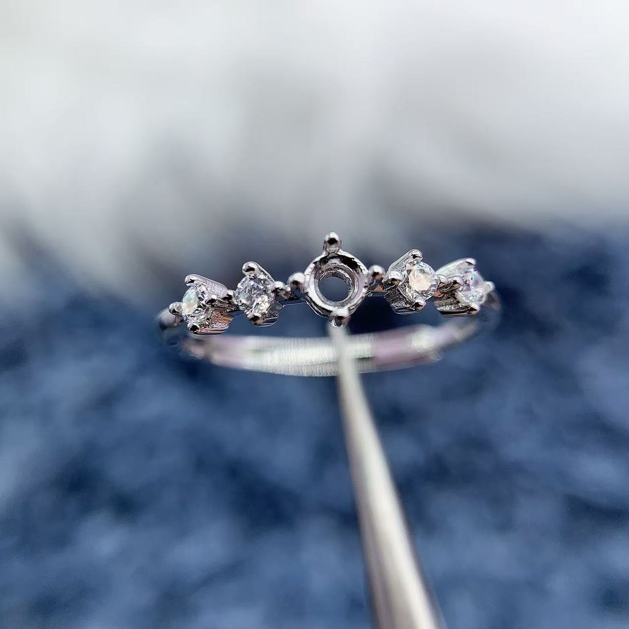 S925银戒指空托圆形3*3 4*4 5*5 6*6 7*7mm多尺寸简约日常百搭款