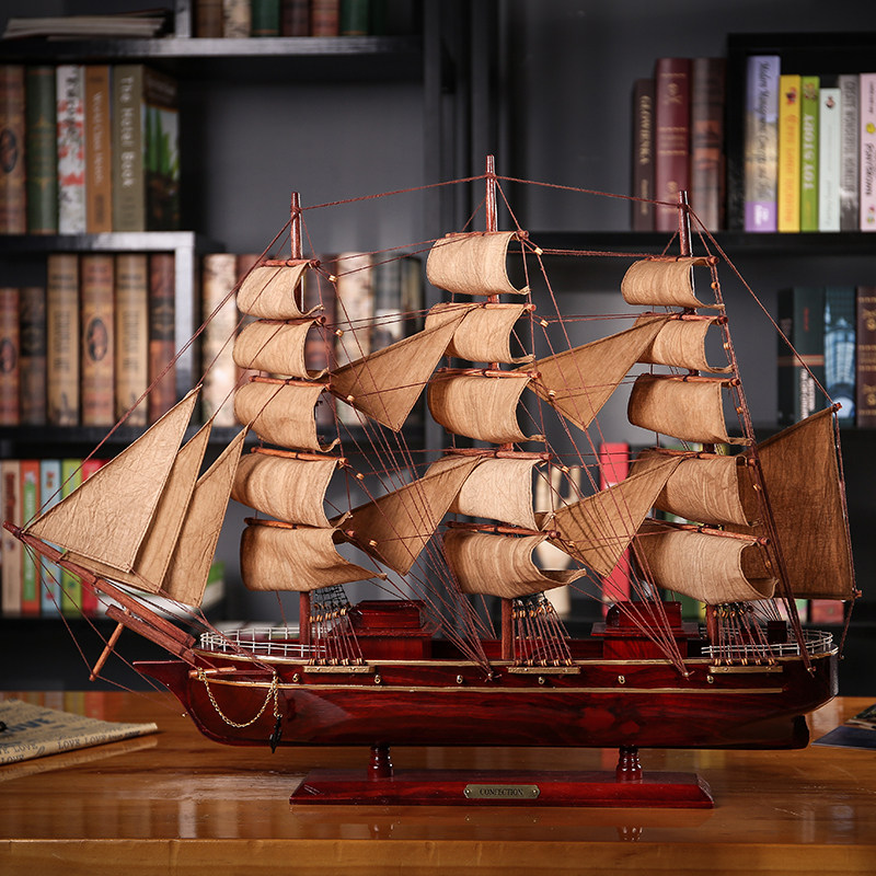实木一帆风顺帆船摆件复古风高档桌面老K板领导办公室乔迁开业礼