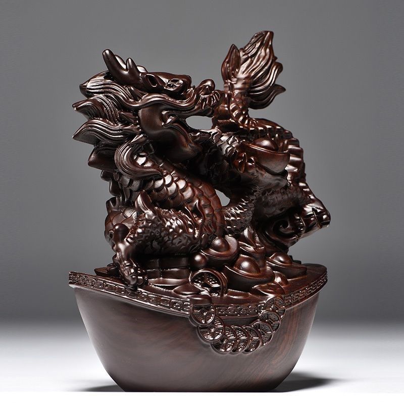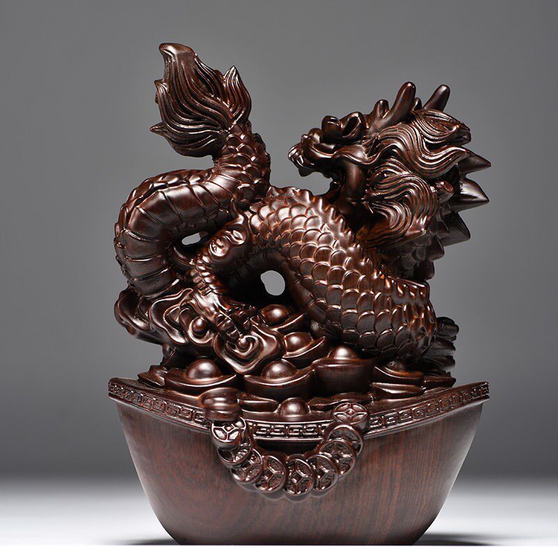 黑檀木雕龙摆件实木十二生肖龙动物家居客厅办公室装饰工艺品送礼