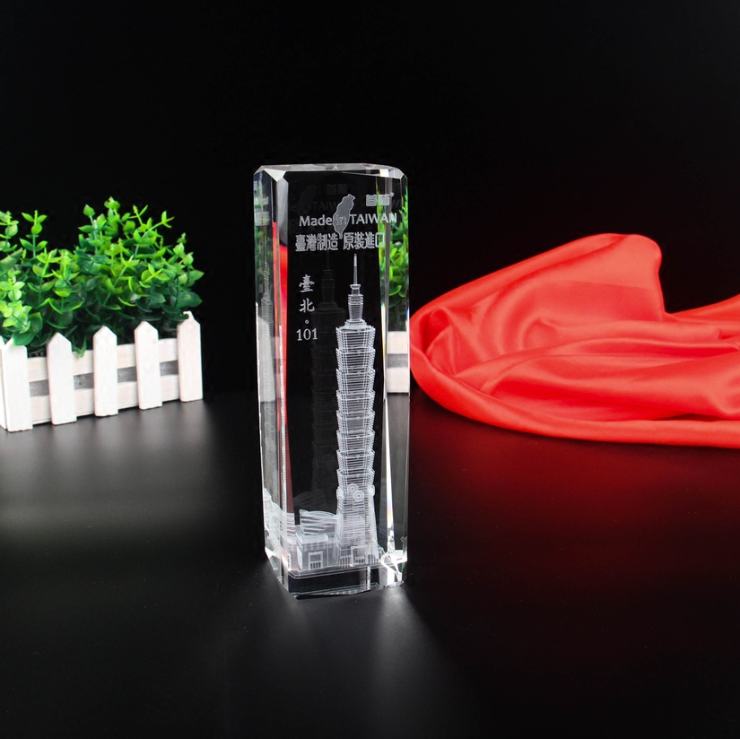 水晶台湾101塔模型 商务纪念品 定做建筑模型水晶内雕 晶内雕定制