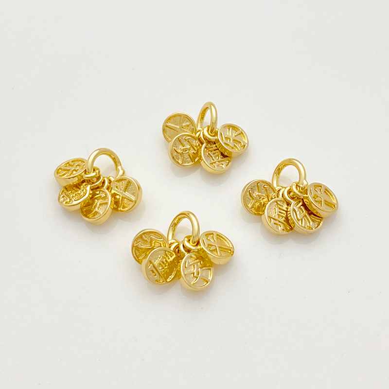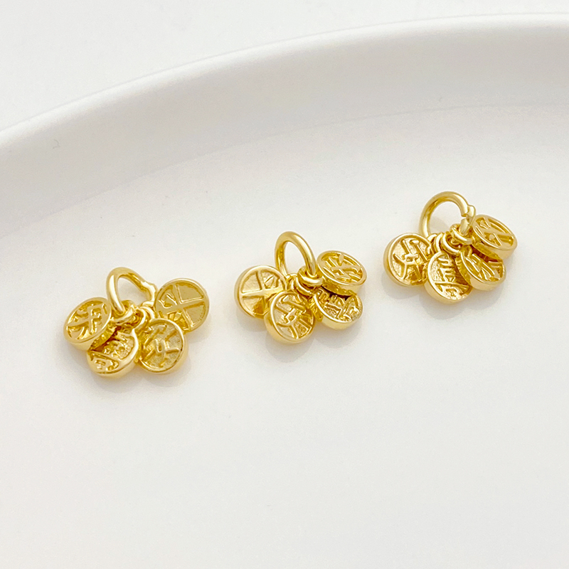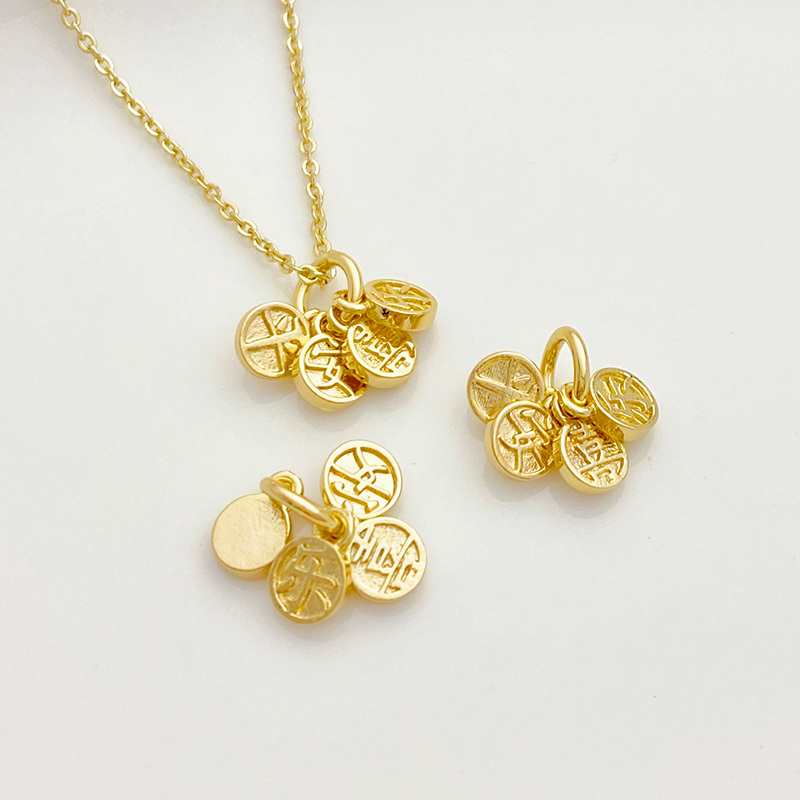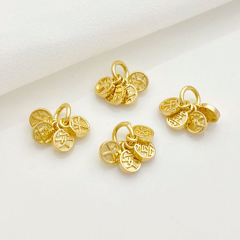 14K包金中国风平安喜乐祝福小吊牌手工diy串手链项链饰品材料配件