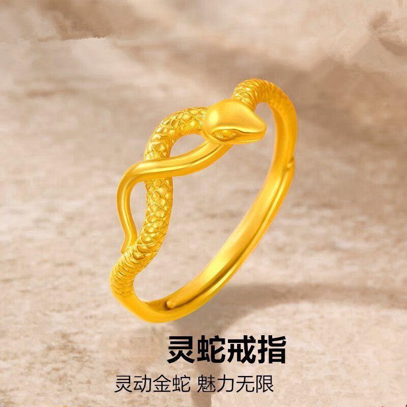 正品金包银灵蛇戒指男女尾戒开口蛇指环本命年送家人朋友女友礼物