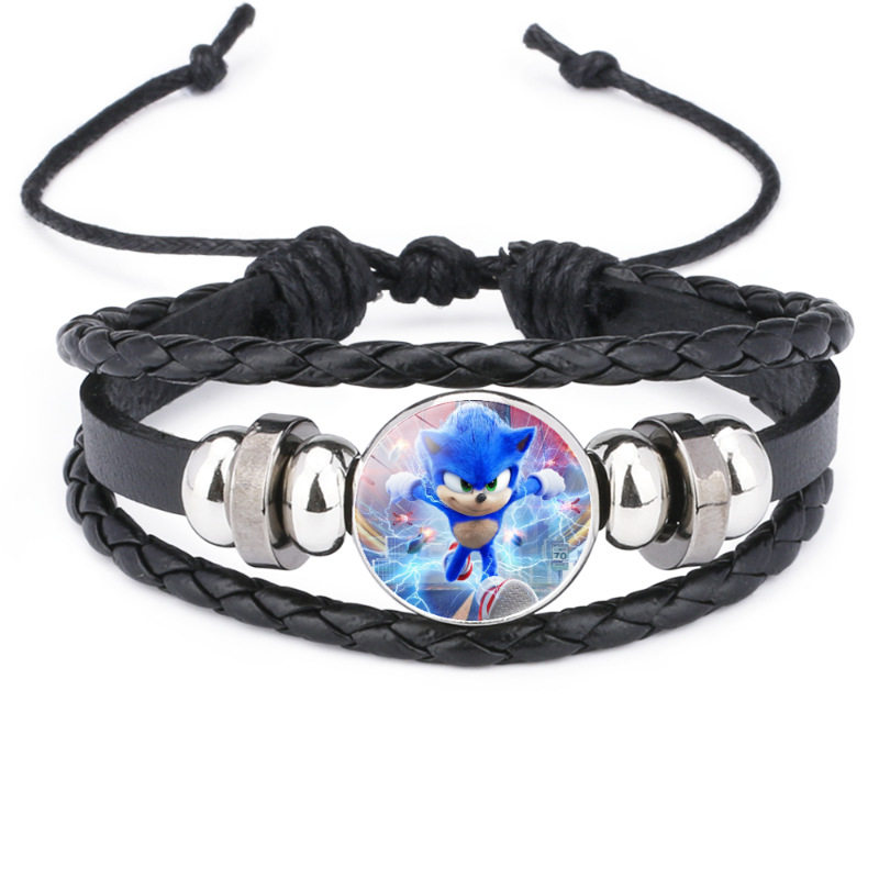 游戏周边配饰 刺猬索尼克Sonic The Hedgehog音速小子黑色皮手链