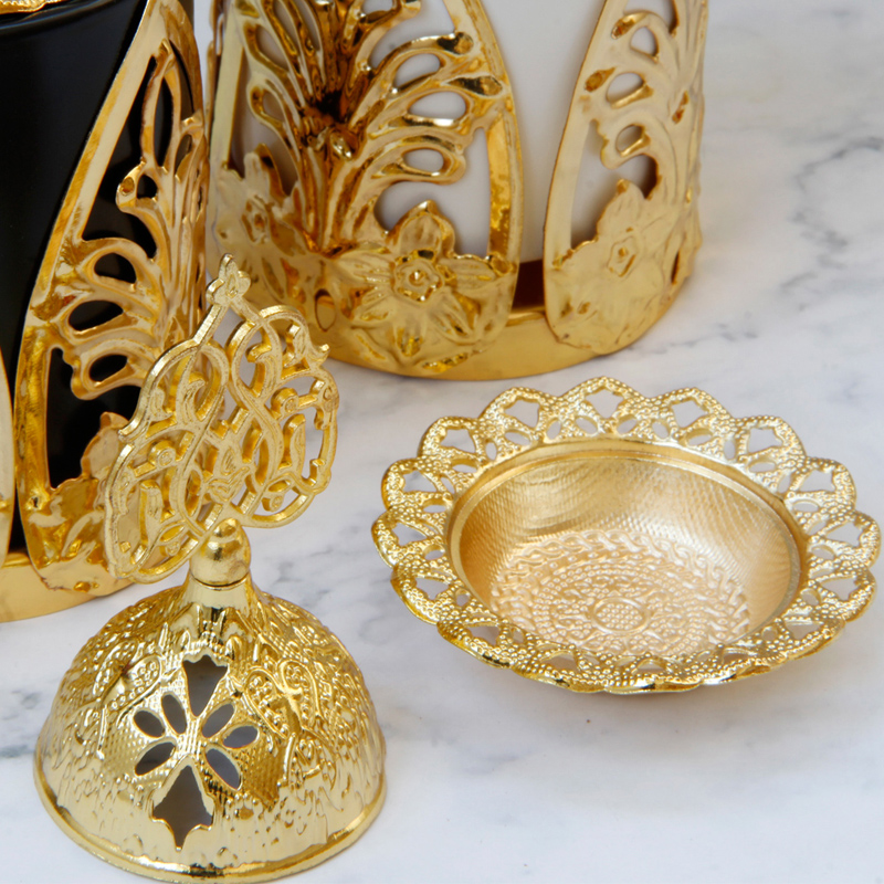 金色中东阿拉伯金属香炉哑光黑白色陶瓷桌面香炉装饰摆件工艺品