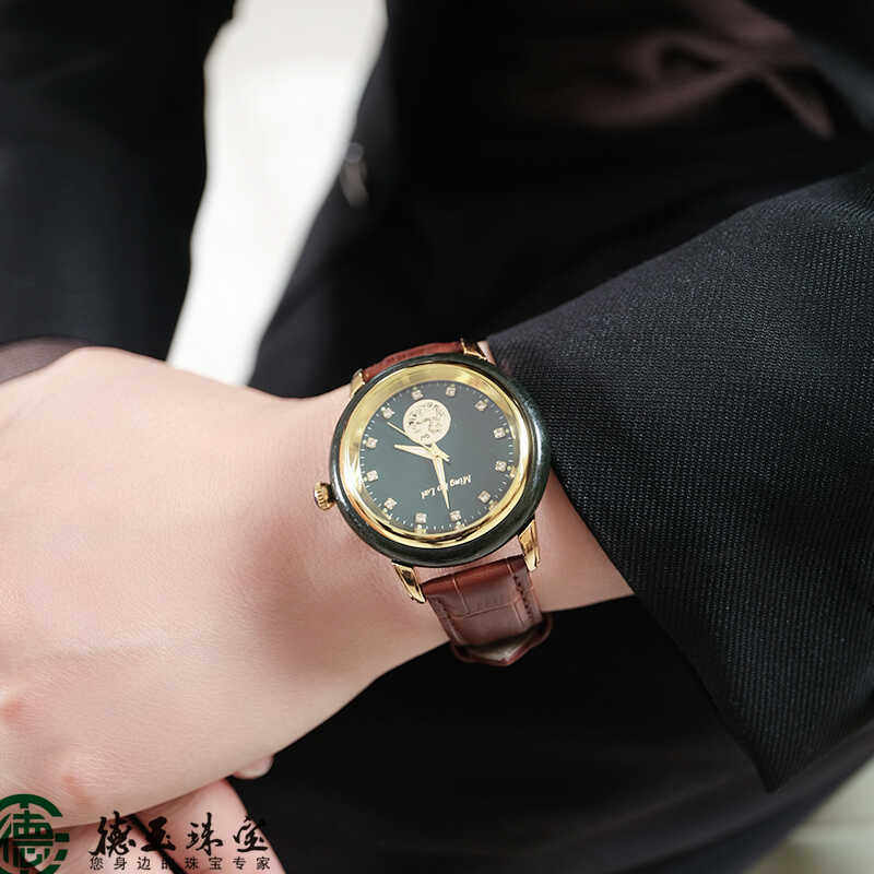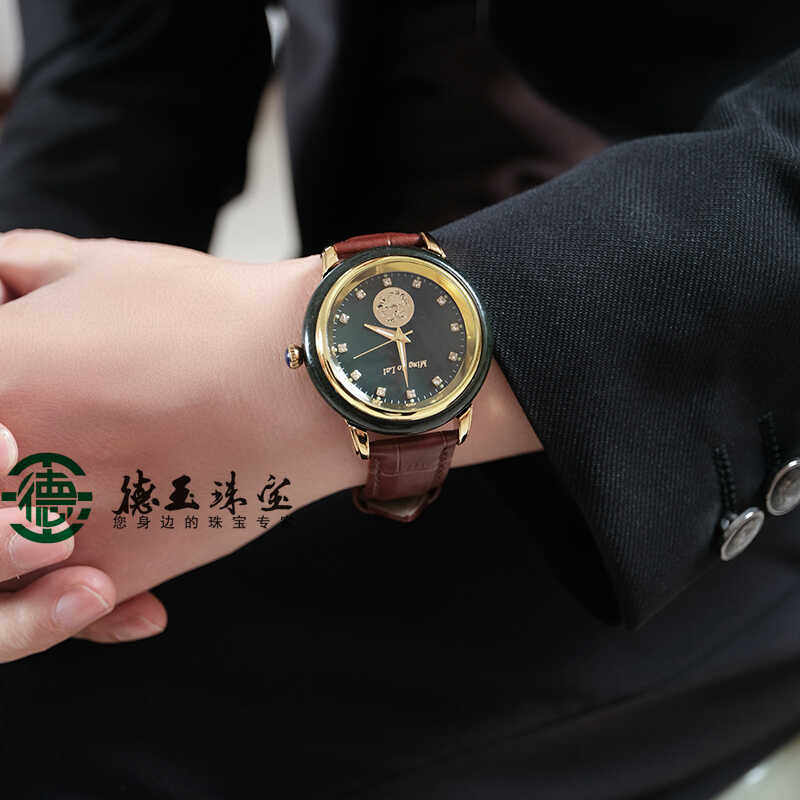 和田玉青玉正品男女士真皮电子石英表带防水手表