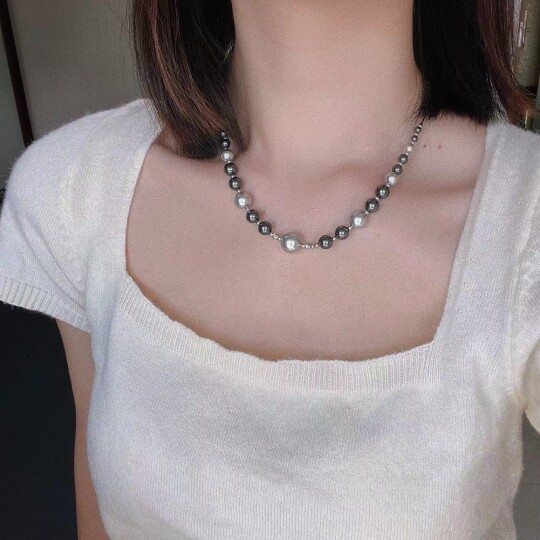 碎银子满天星清冷澳白真多麻色施家极光渐变珍珠项链高级感礼物