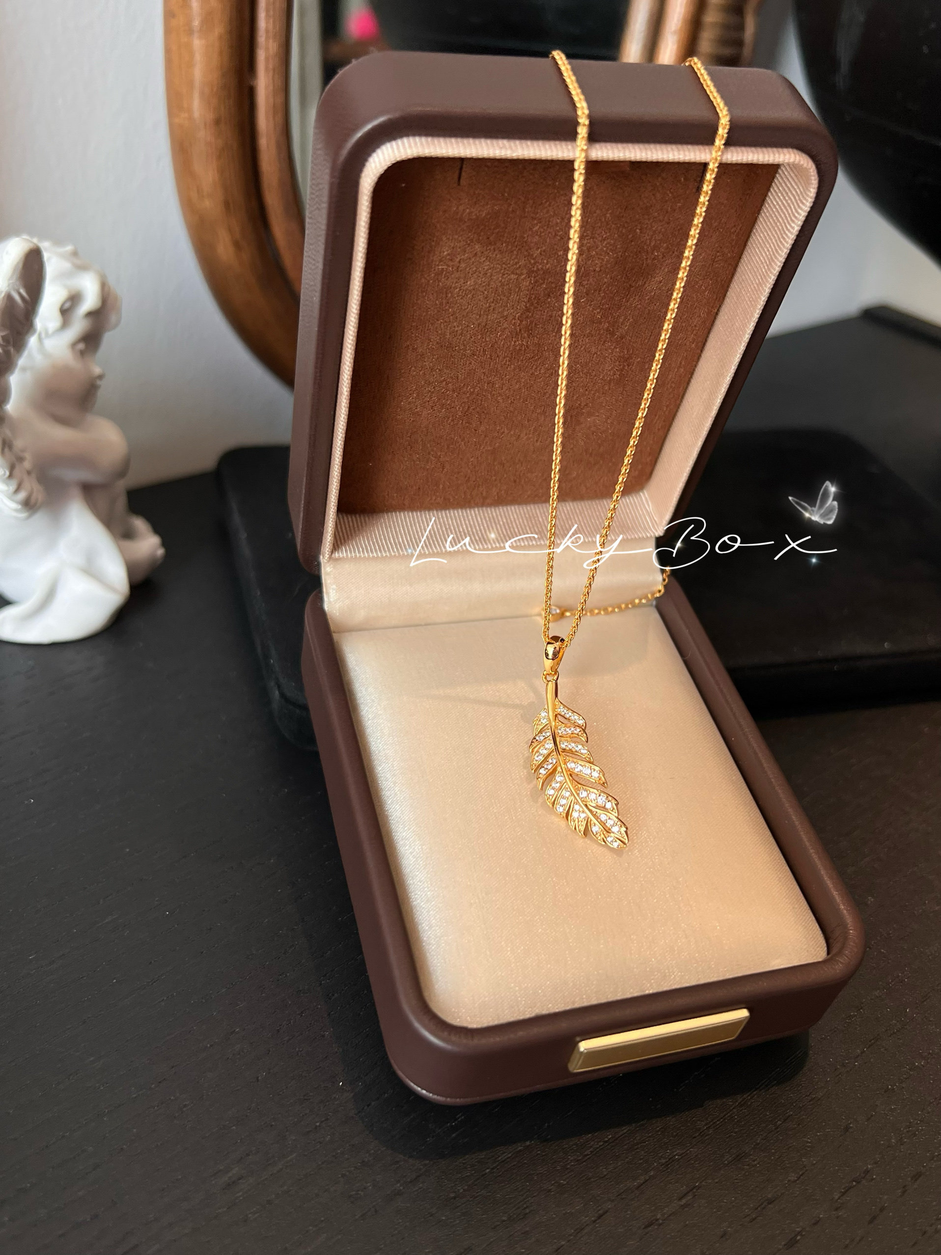 「一叶暴富」能量图腾法式浪漫羽毛吊坠S925银镀金项链高级感轻奢