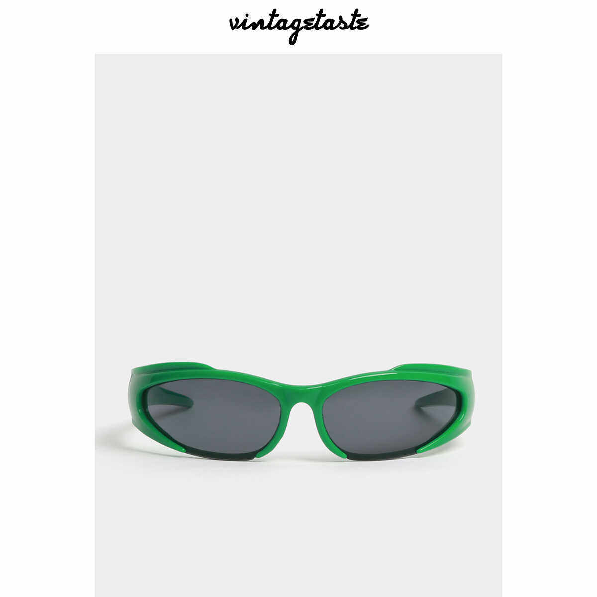 VINTAGETASTE 炫酷半框设计感ins风防紫外线骑行墨镜绿色太阳眼镜