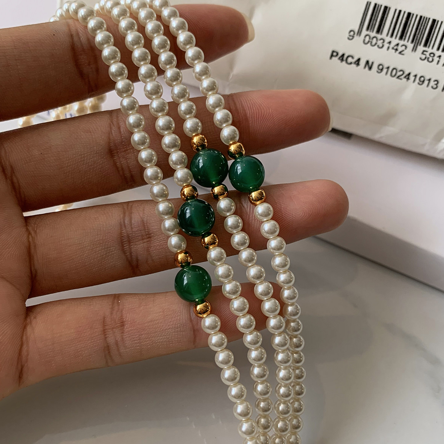 绿色玉髓长款珍珠项链女新中式国风大气高档高级感轻奢毛衣链配饰