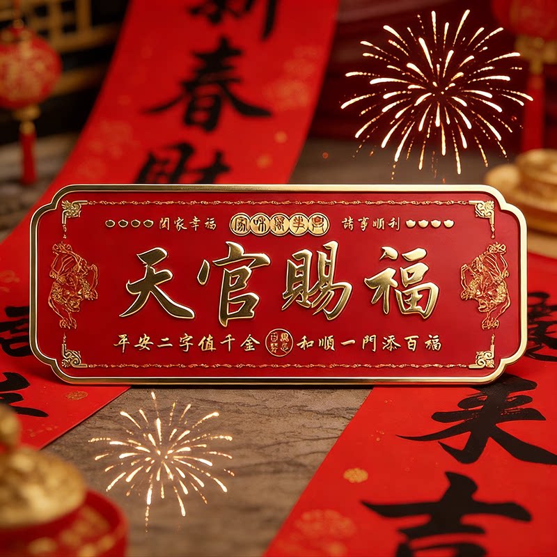 貔貅天官赐福门贴镇宅入户门横幅金属门牌中国风红色新春装饰摆件