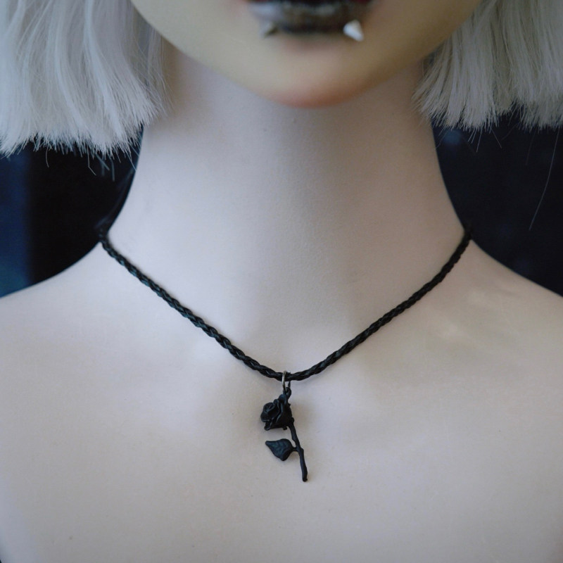 怪糖饰物集原创手工玫瑰吊坠编织锁骨链项链暗黑亚文化黑色