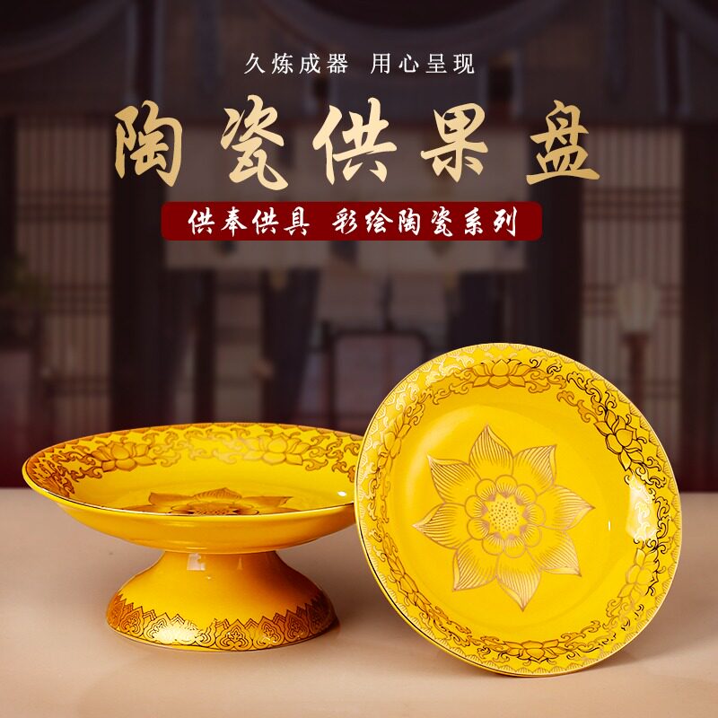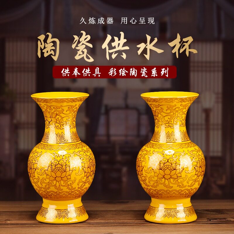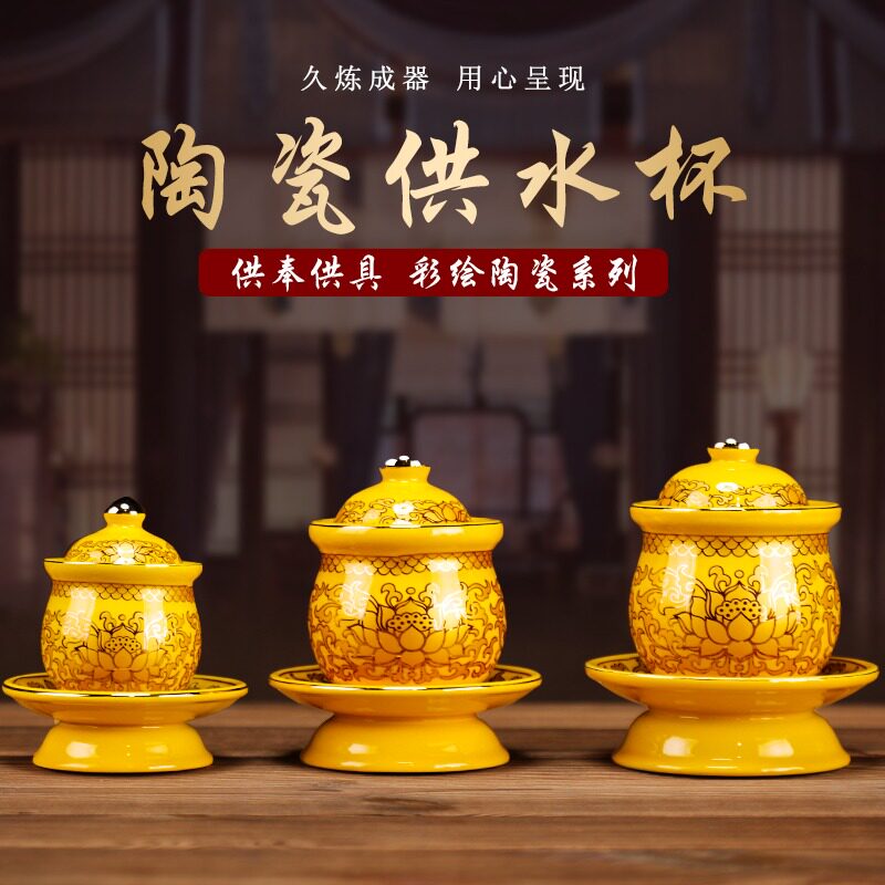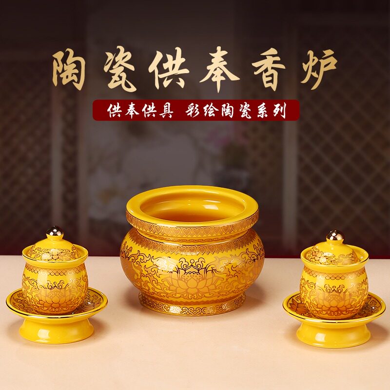 陶瓷供奉香炉家用室内莲花供水杯花瓶佛前供盘供果盘佛具用品大全
