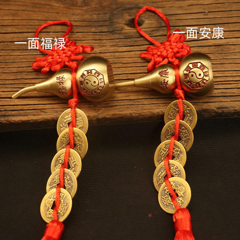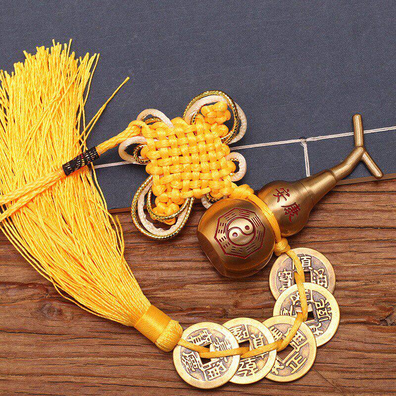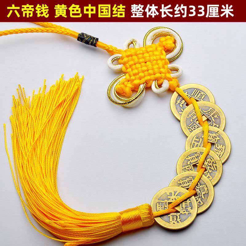 黄线穿五帝铜钱串的五帝钱九串黄色九串五帝钱黄色线绳子六帝挂件