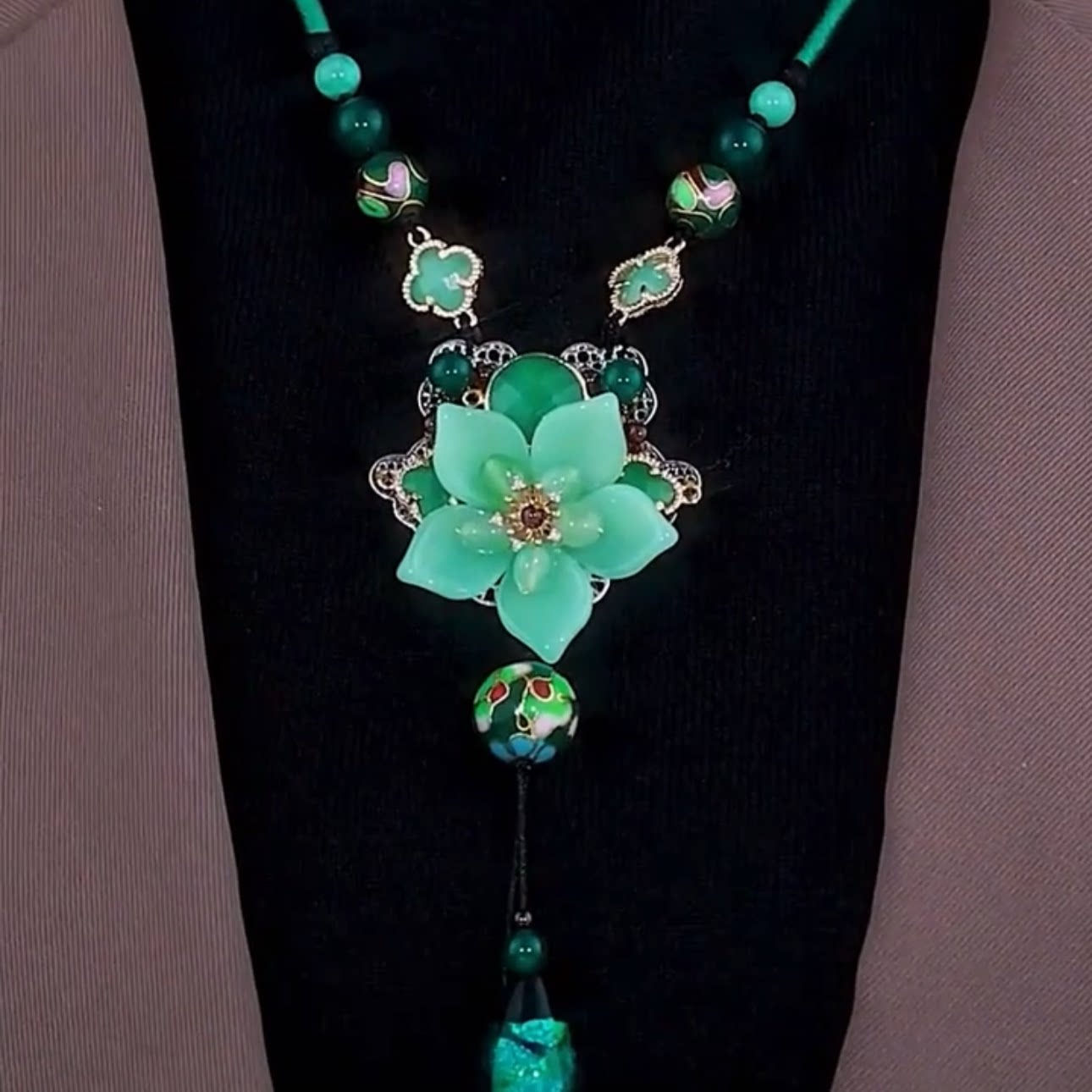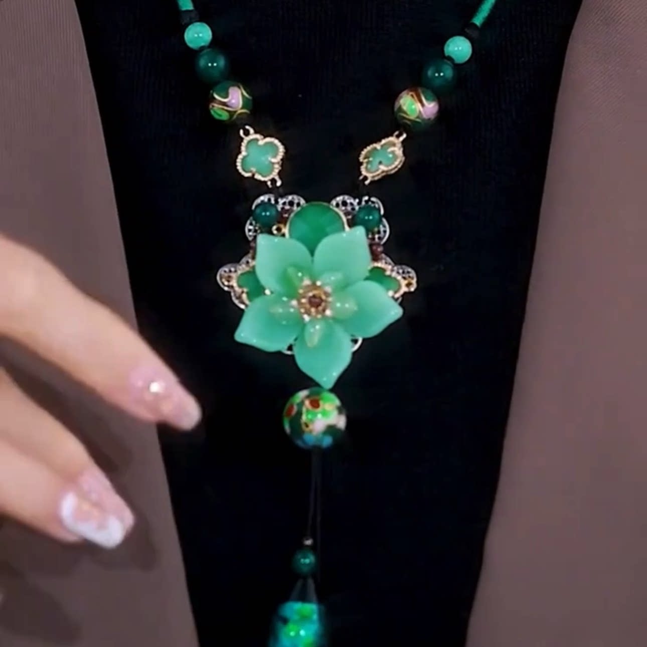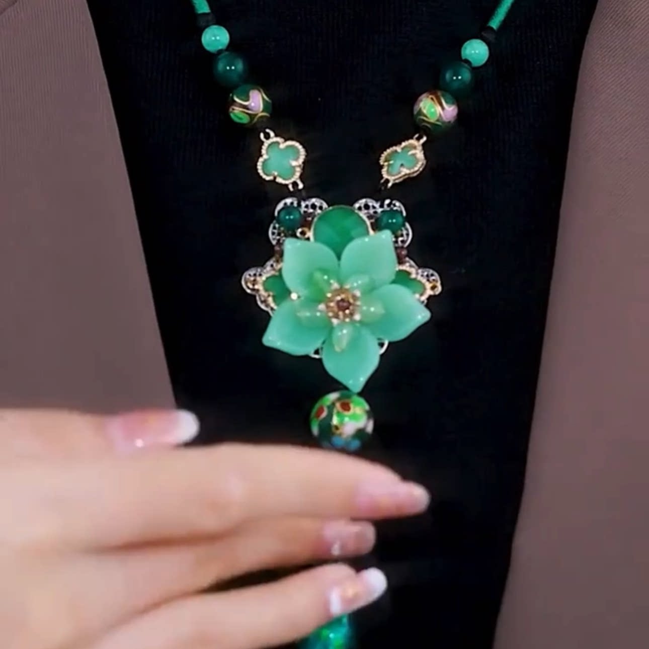 绿色项链莲花造型毛衣链2025年新款潮复古民族风高级感挂件配饰长