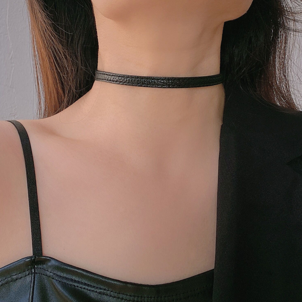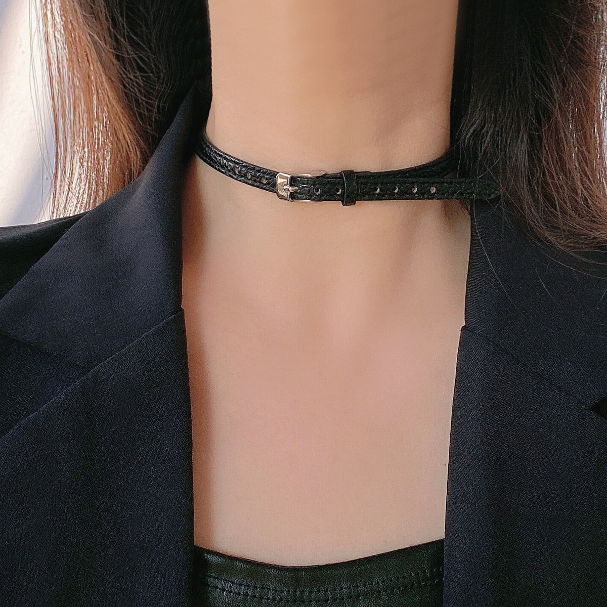 黑色皮质choker皮带扣项圈女短款极简锁骨链颈带颈链高级感项链
