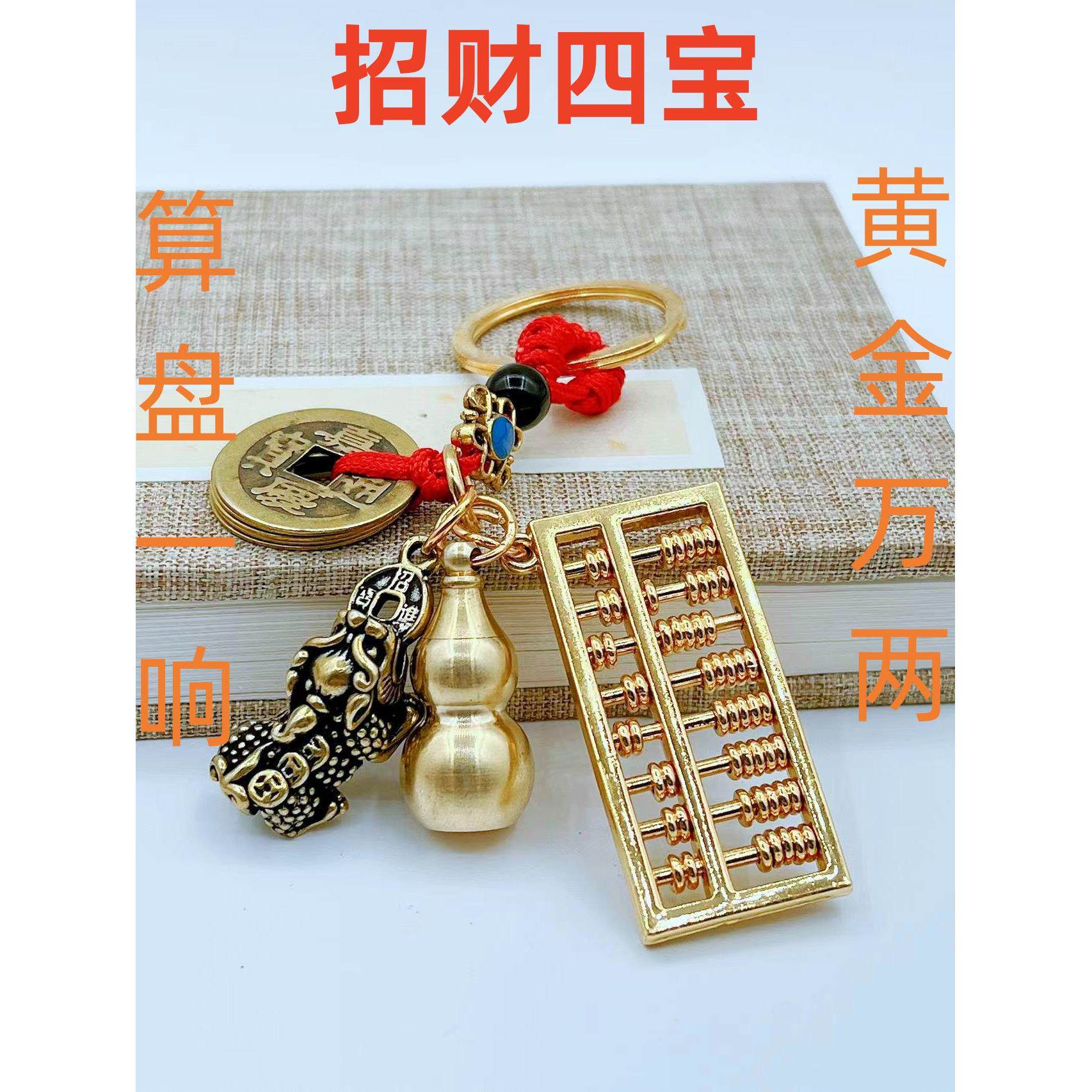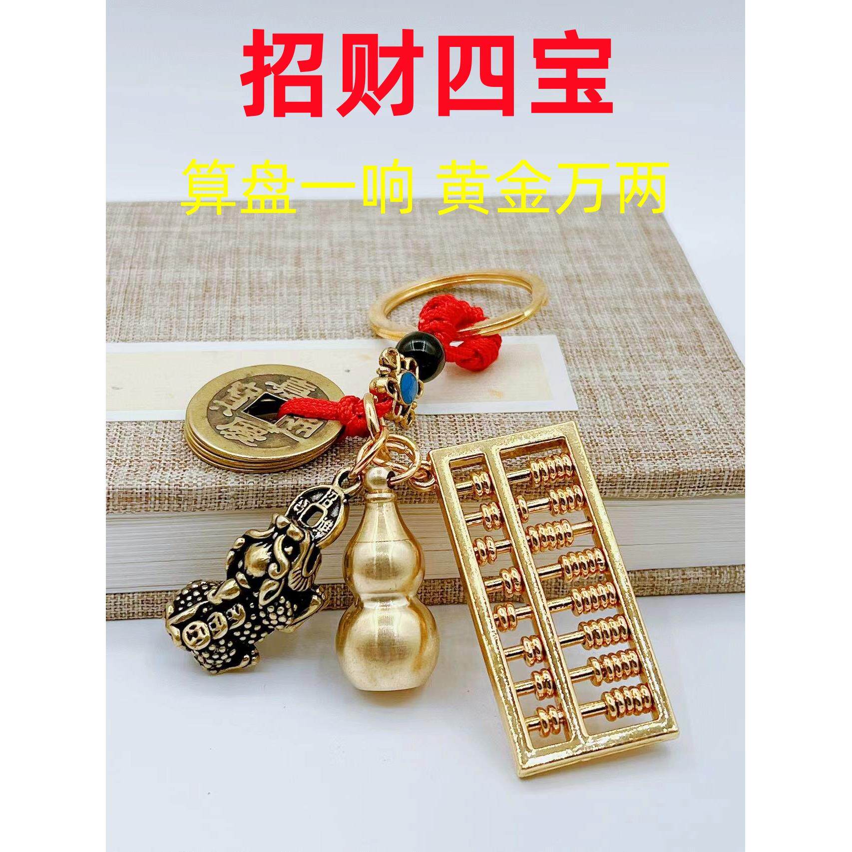 黄铜如意活动算盘五铜币十二生肖空心朱砂葫芦貔貅汽车钥匙扣礼物