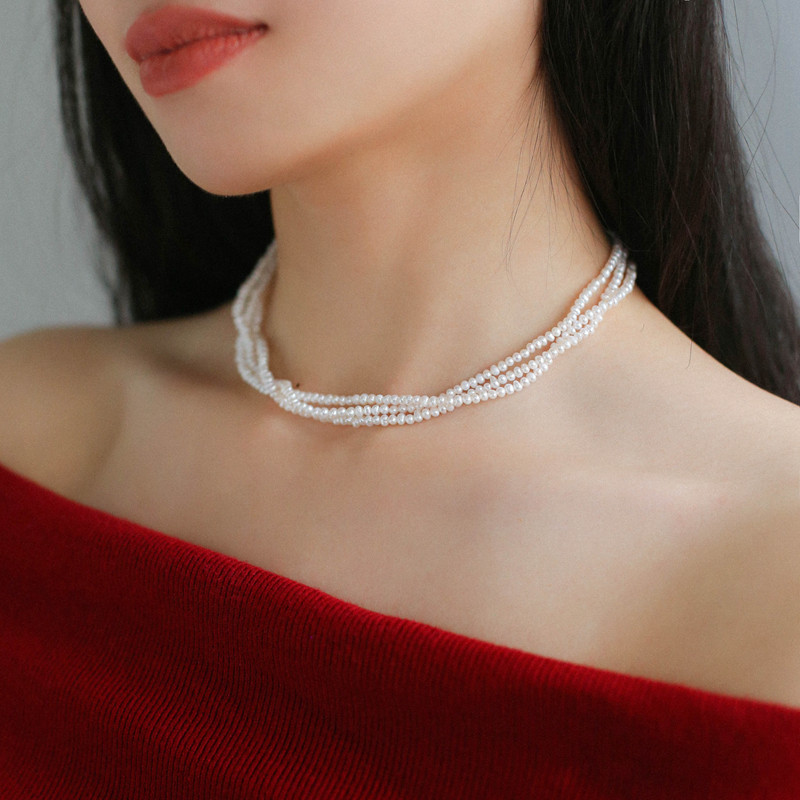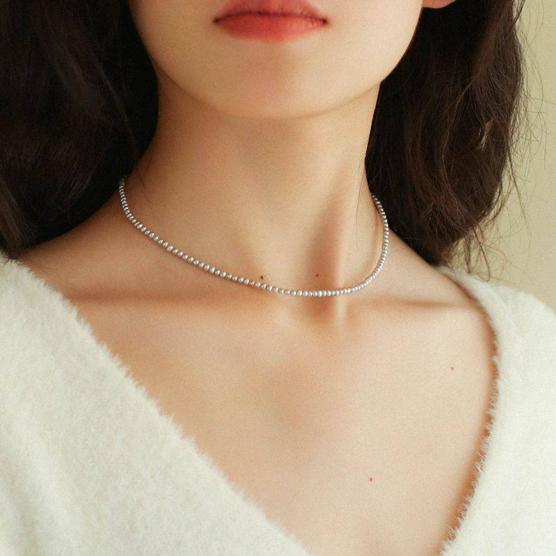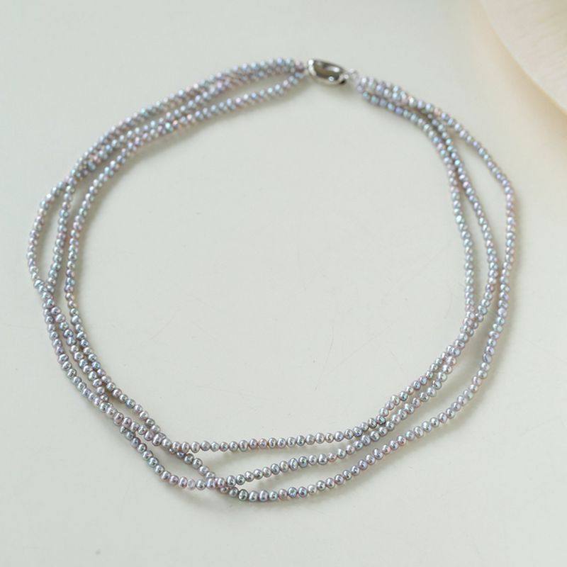 925银清冷气质银灰色mini天然米珠珍珠项链轻奢气质高级锁骨颈链