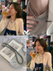 「全店买三赠一」施家同款真多麻灰珍珠项链百搭锁骨链银灰色颈链