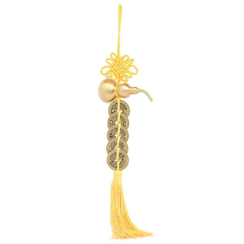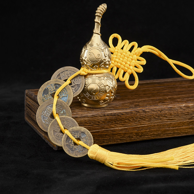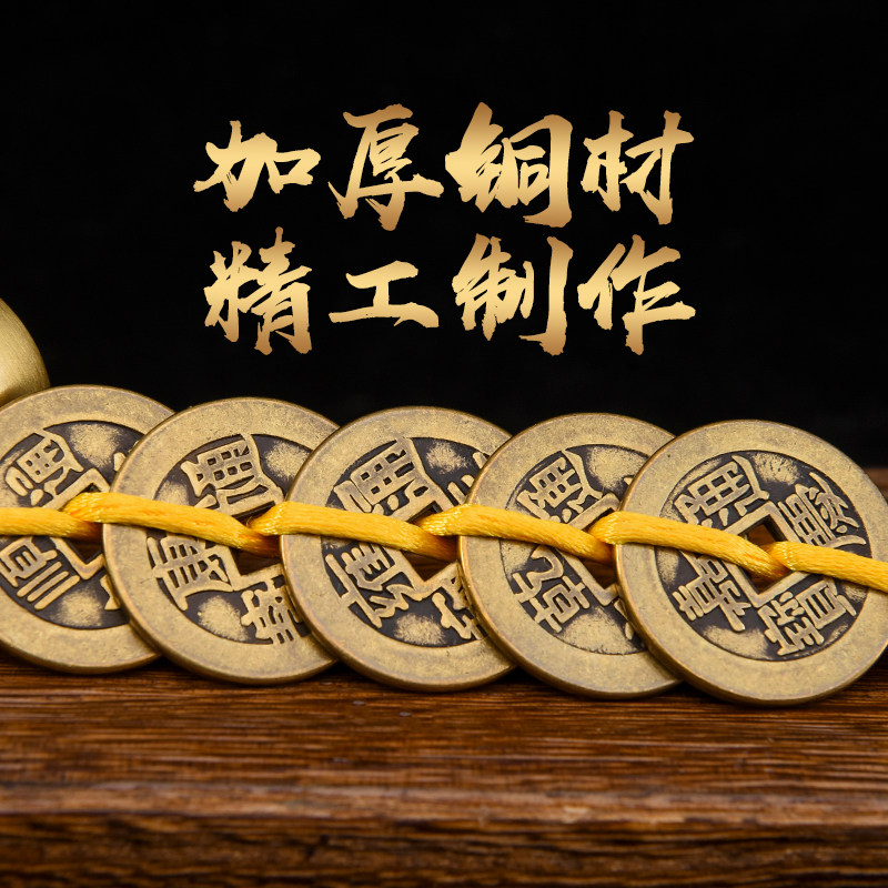 五帝钱门对门葫芦挂饰真品古币铜钱串纯铜加厚六帝钱黄绳散铜钱吉