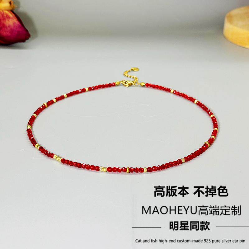 不掉色现在要出发金晨同款红色尖晶石串珠项链女锁骨链小众设计潮