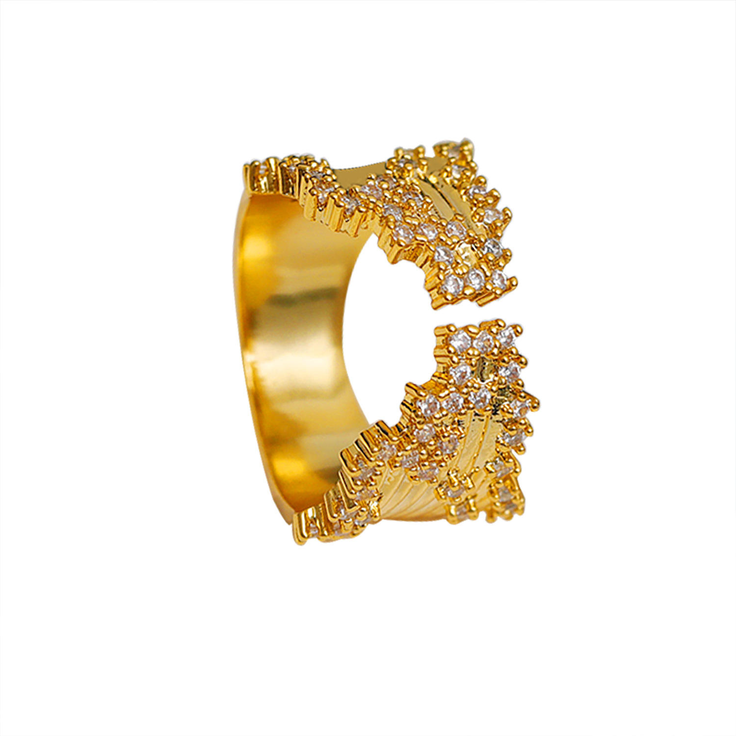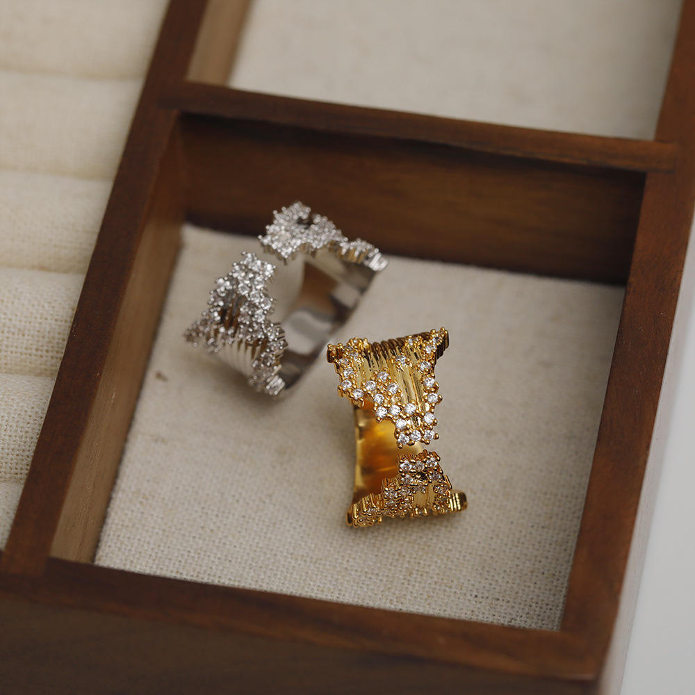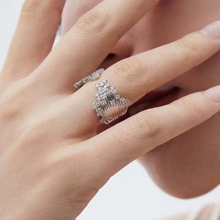 ins2025感闪钻开口叠戴指环戒子嘻哈甜酷辣妹风皇冠城堡锆石戒指