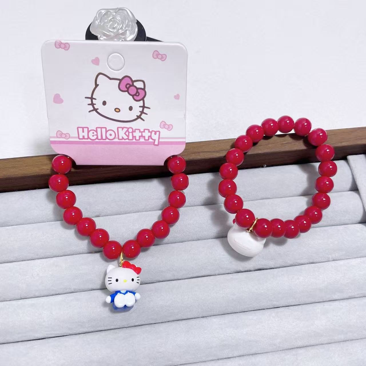 新年红色串珠可爱KT手链卡通hello Kitty女生百搭首饰品