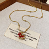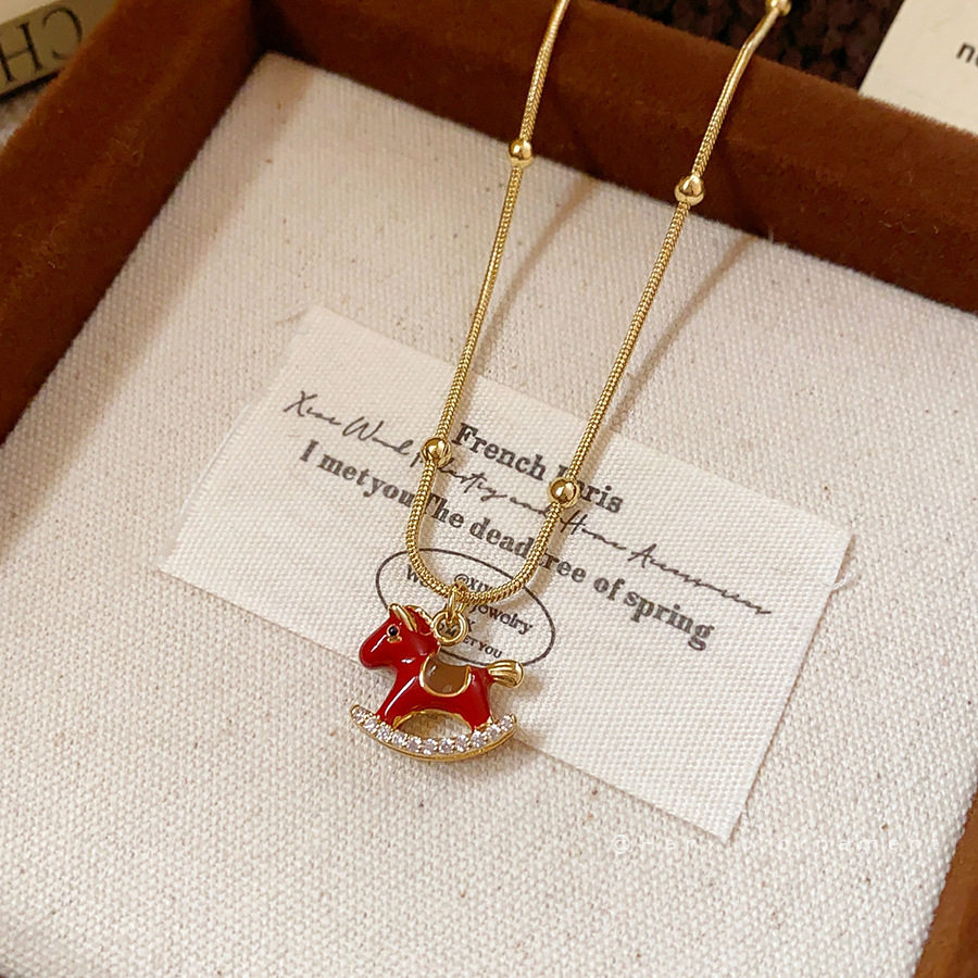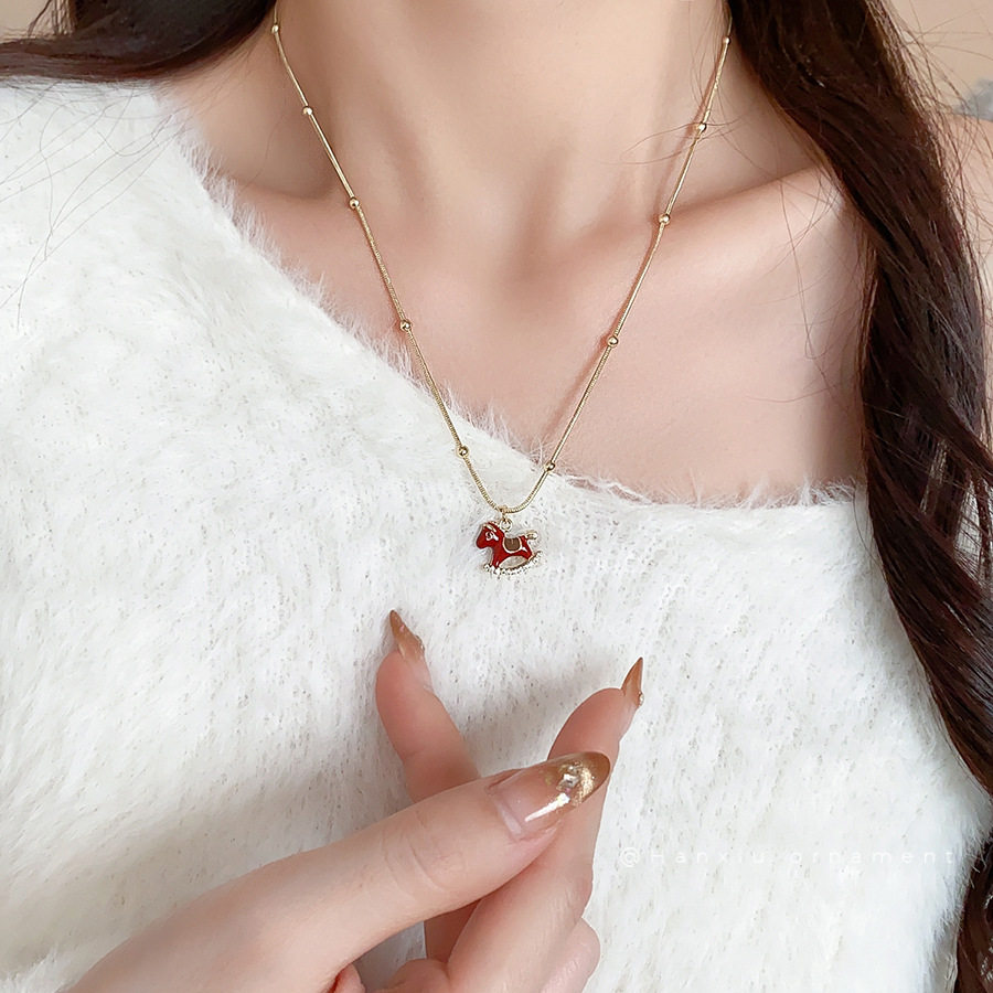 真金电镀红色滴油小马珍珠项链轻奢小众锁骨链百搭气质项饰饰品女