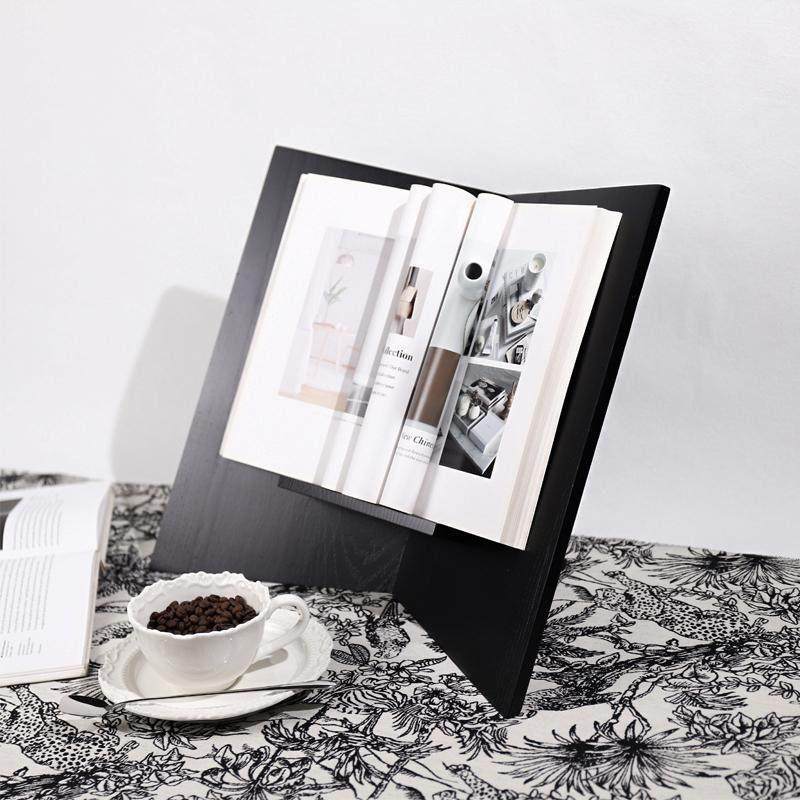轻奢极简设计黑色蜡木书报架摆件居家样板间客厅书房侘寂风装饰