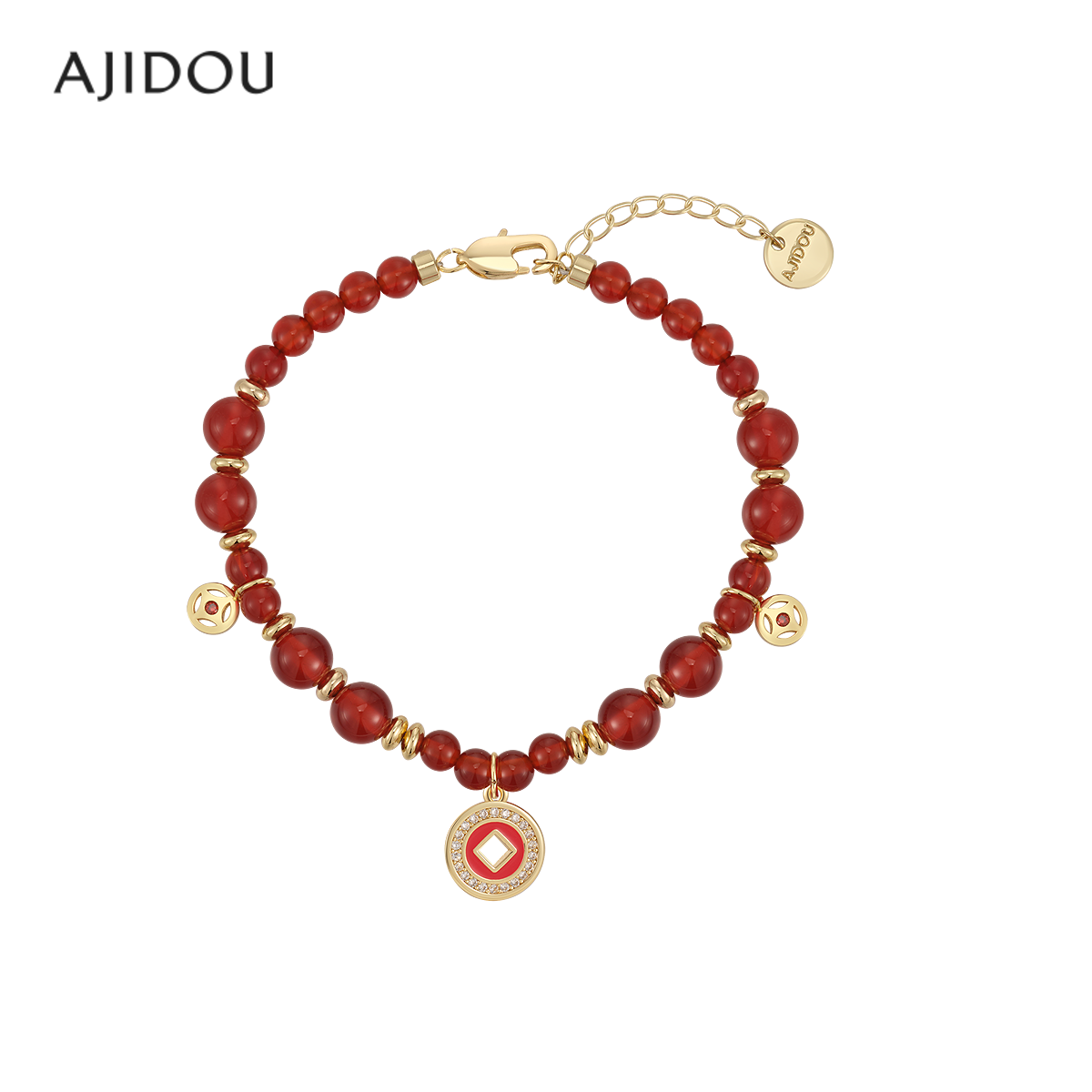 AJIDOU阿吉豆手链女新款五帝钱系列钱币玛瑙红色礼盒新年转运手链