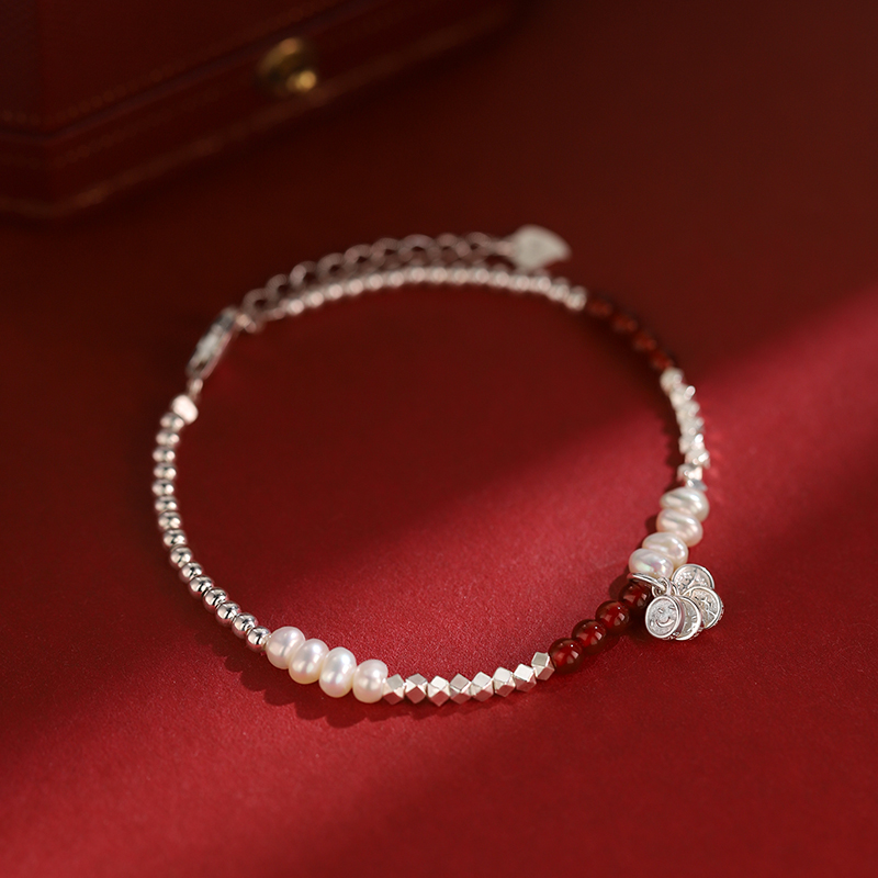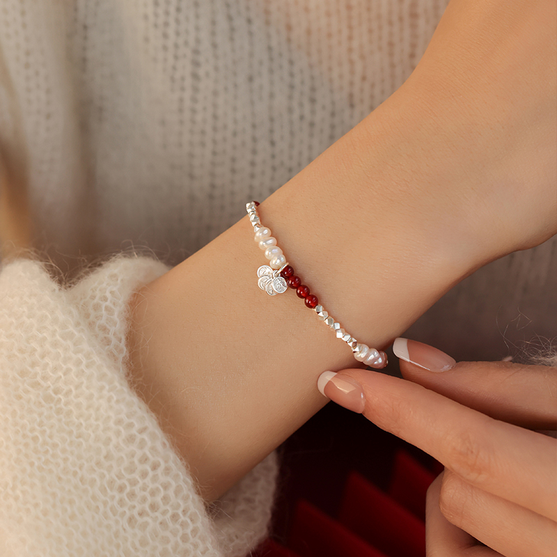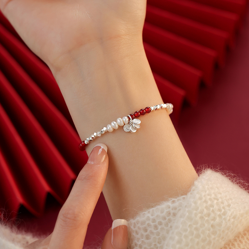 MEILAIFUREN高端定制 925纯银红玛瑙碎银手链手串本命年手镯