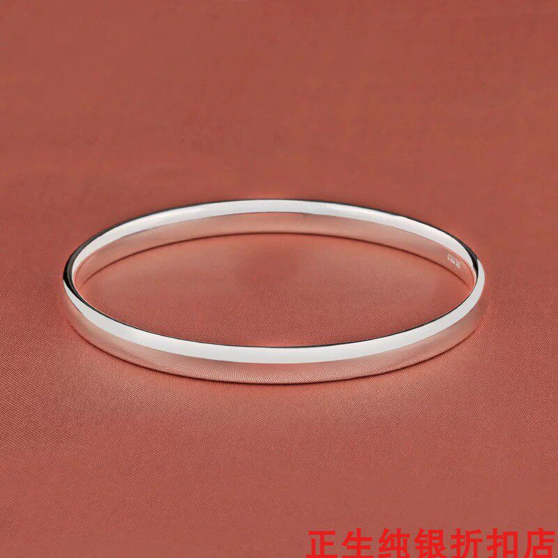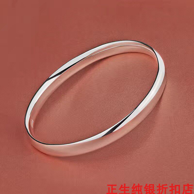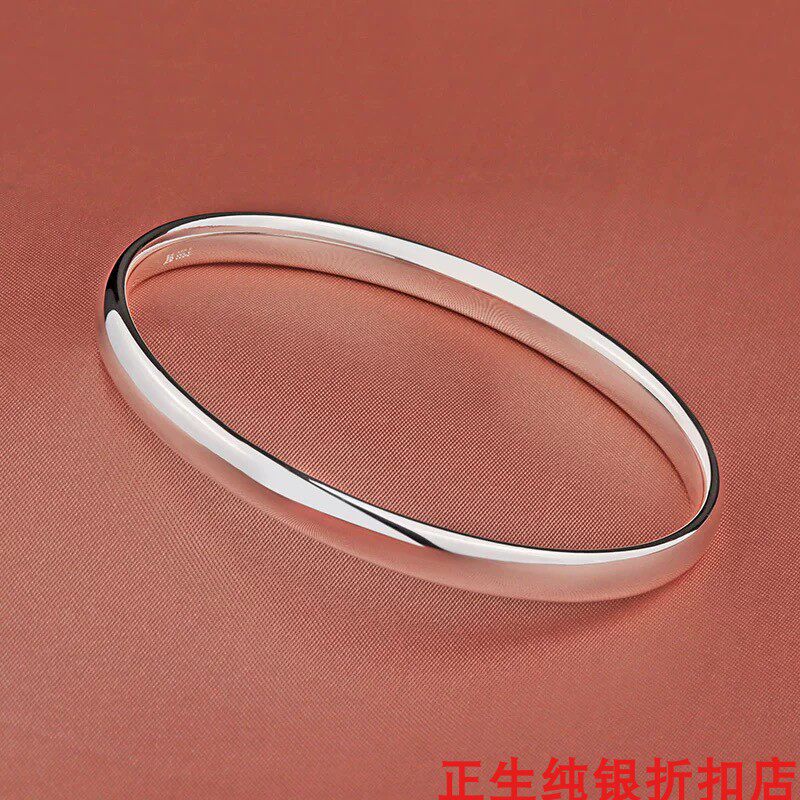 香港正生光面泥鳅背实心素圈宽面闭口纯银手镯足银9999送女友礼物