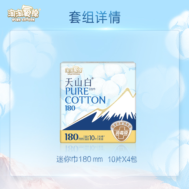 【国标消毒级】淘淘氧棉天山白纯棉卫生巾迷你巾180mm姨妈巾