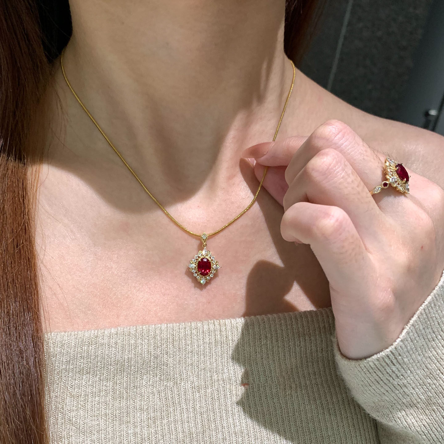 爆闪红色血滴鸽子蛋项链女精致百搭颈链轻奢小众设计高级感锁骨链