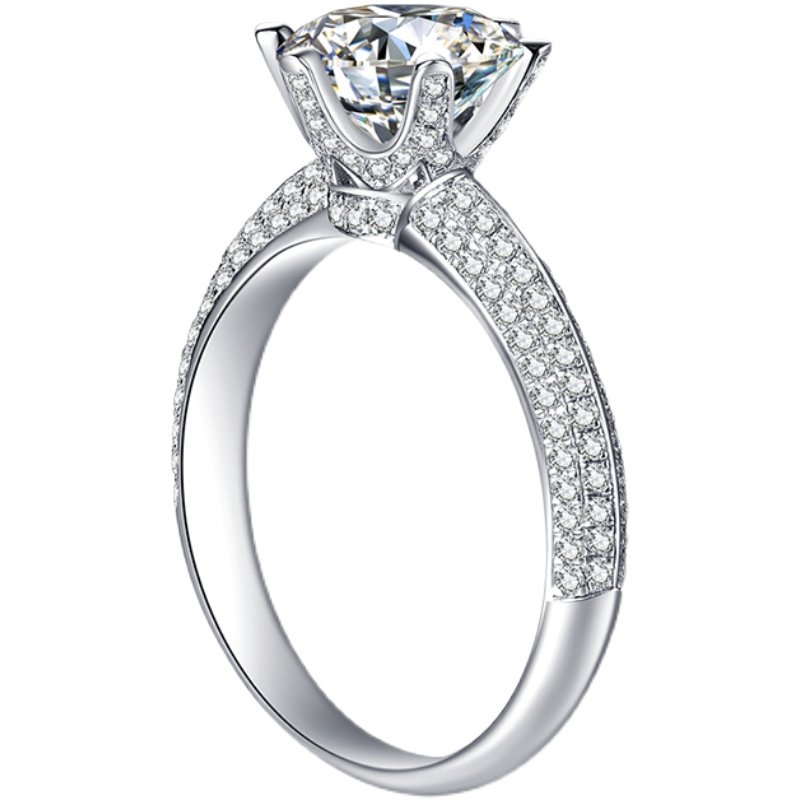 PT950铂金满钻群镶戒指镶嵌进口莫桑钻半壁江山指环玫瑰金同款女