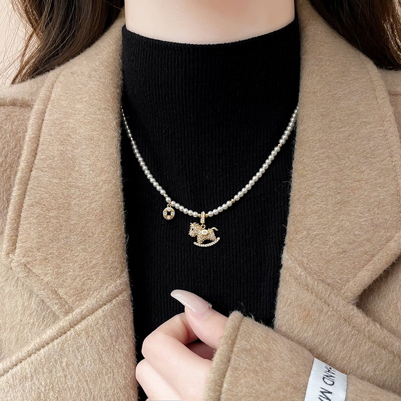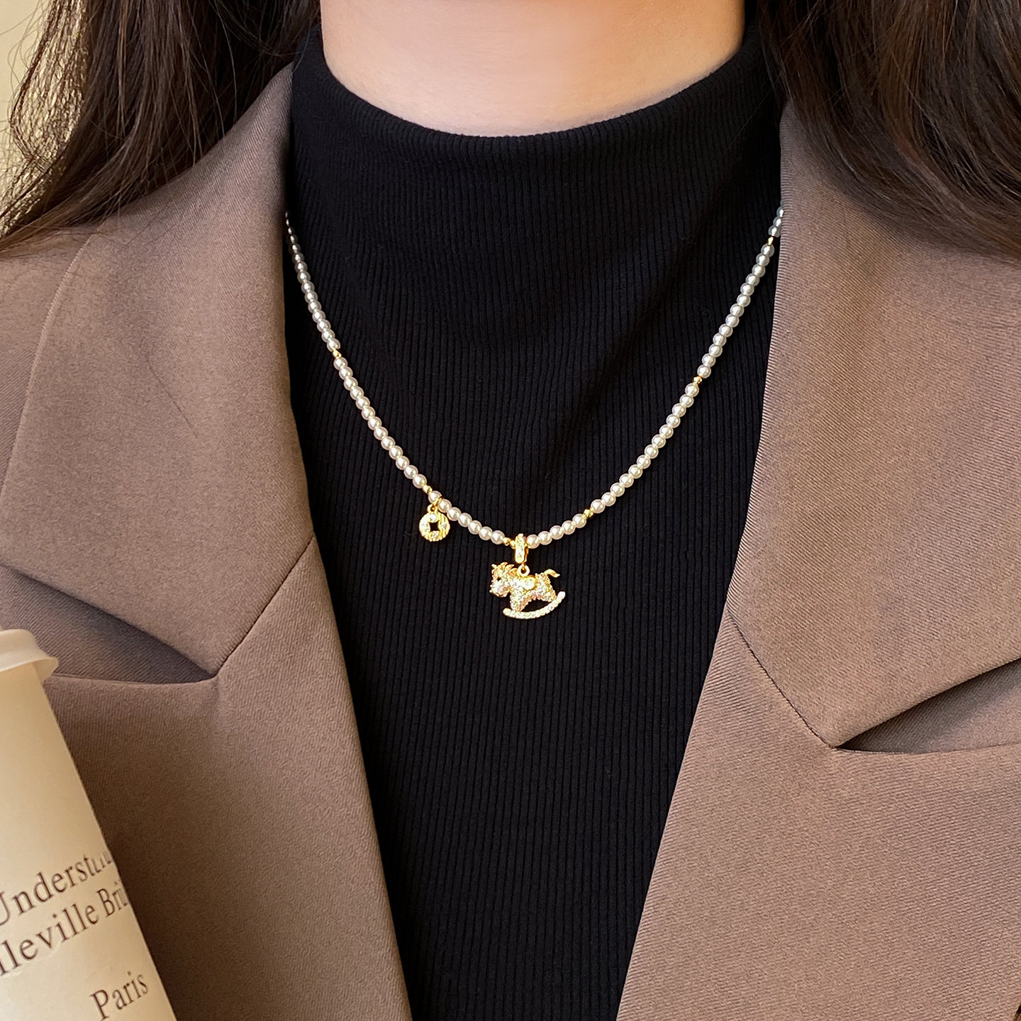 金色小马珍珠项链女高级感轻奢小众2025新款秋冬天配饰毛衣的颈链