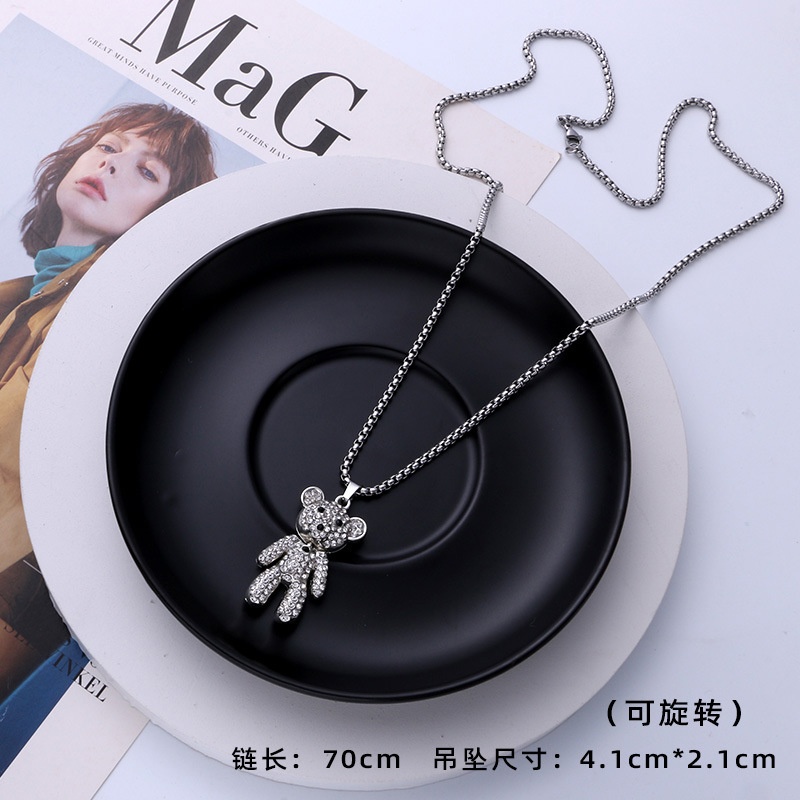 秋冬百搭长款毛衣链韩版气质满钻小熊项链女冷淡风装吊坠街舞