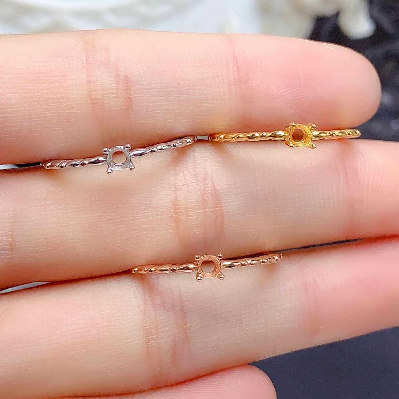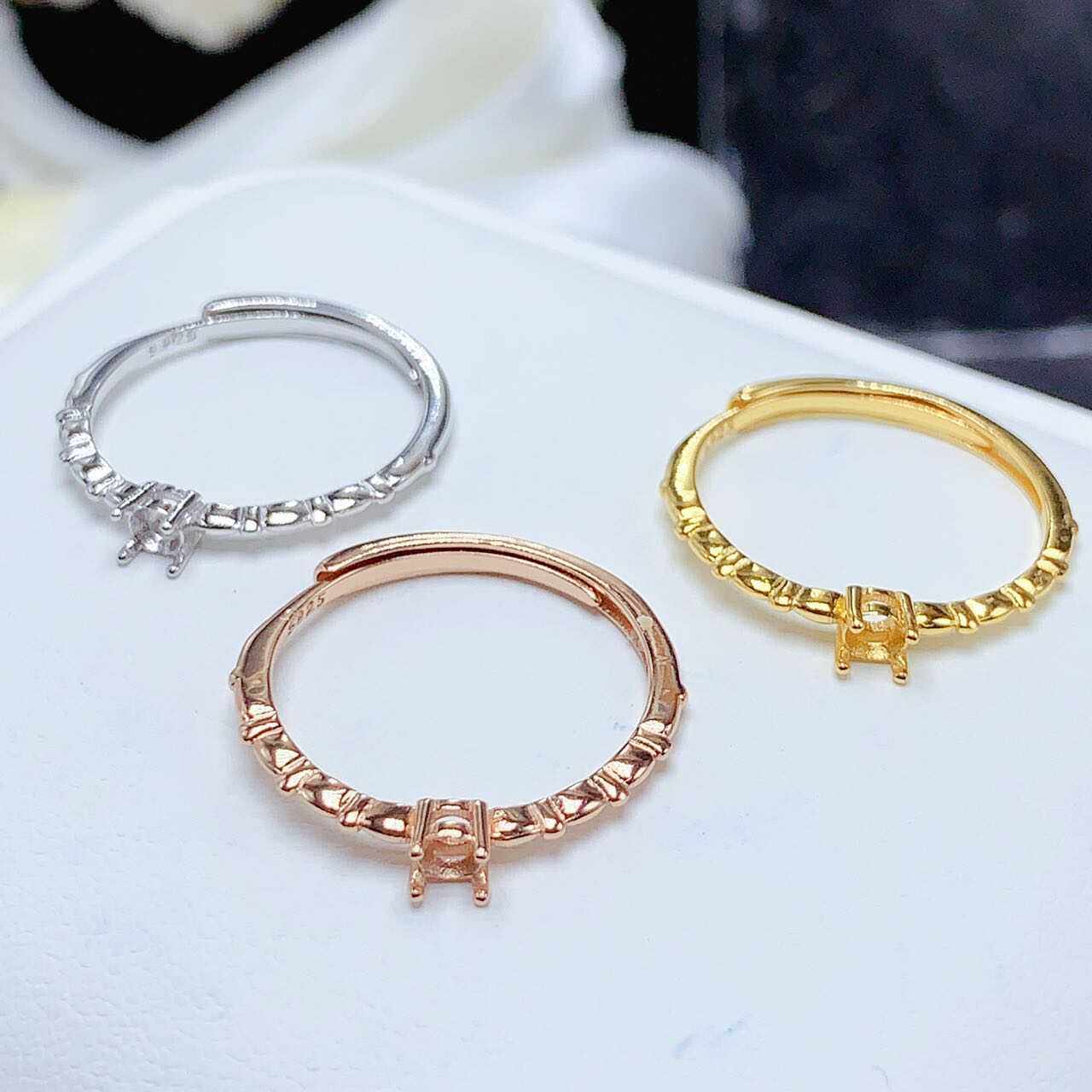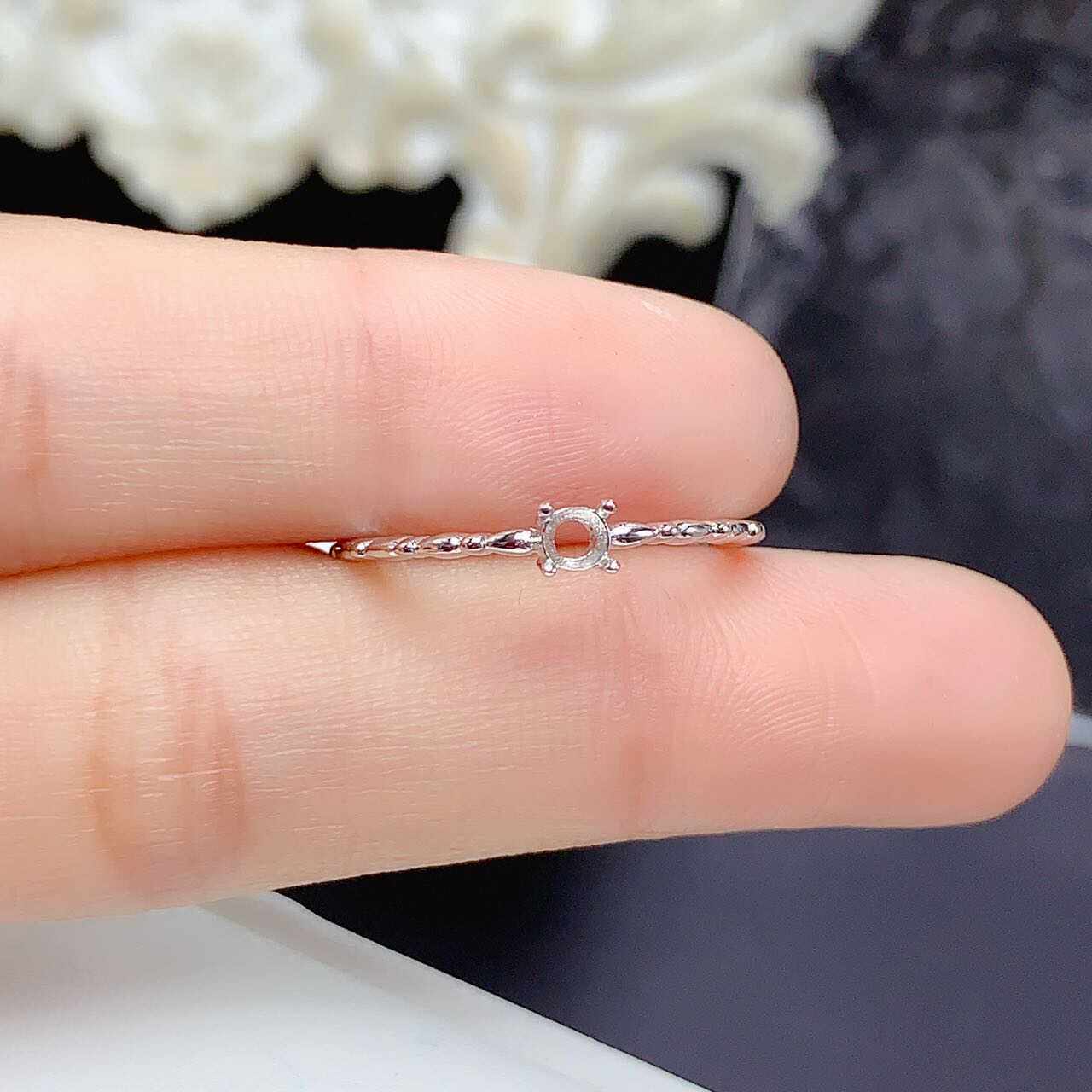 简约小清新精工戒指空托镶嵌圆形3*3mm彩宝祖母绿活圈口首饰配件
