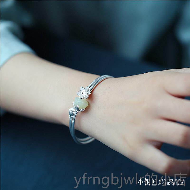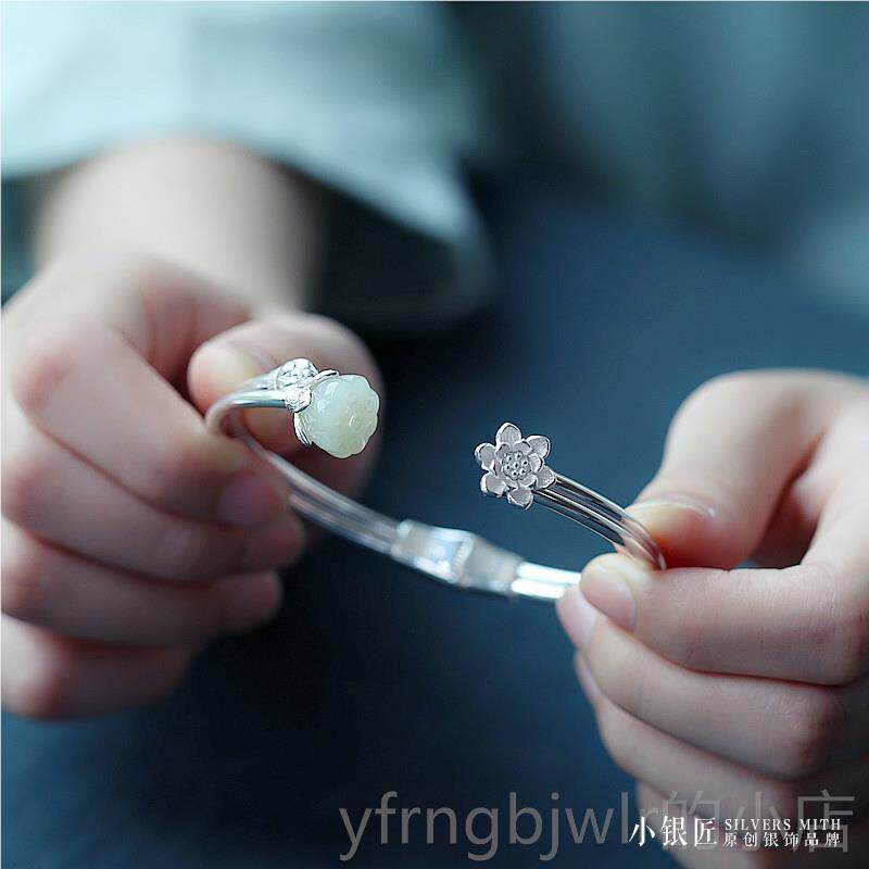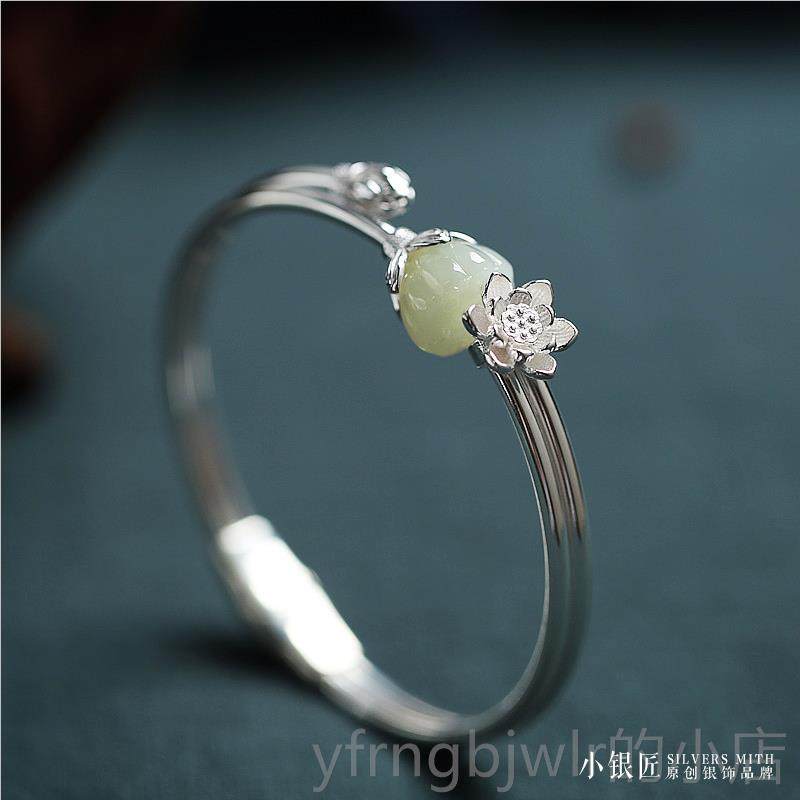 新款沉离香屑同款不纯银和田玉如手镯女开口莲花古风蓬莲步离镯夏